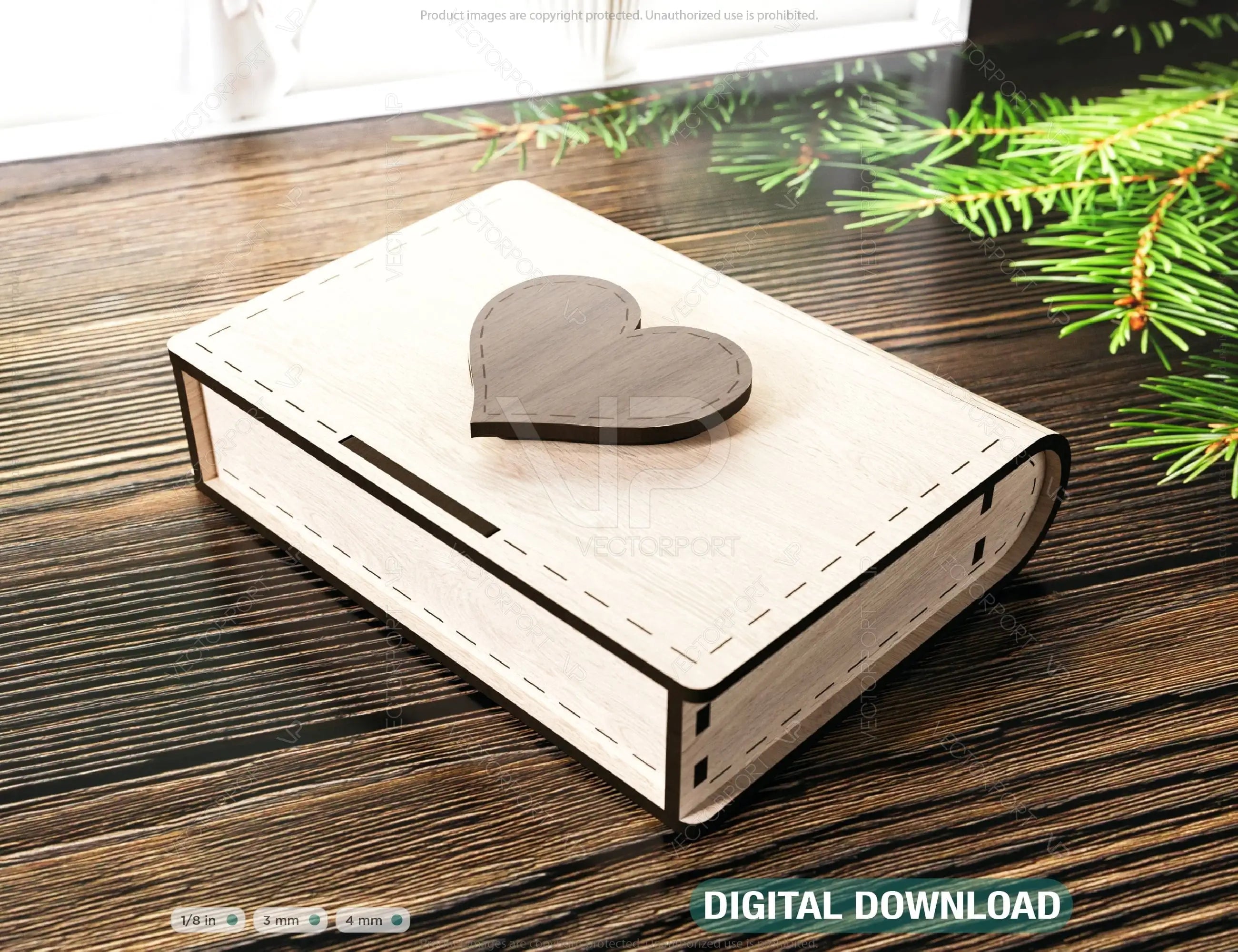 Book Shape Wooden Gift Box with lock Laser cut Card Case Favor Box Digital Downloads | SVG |#U157|