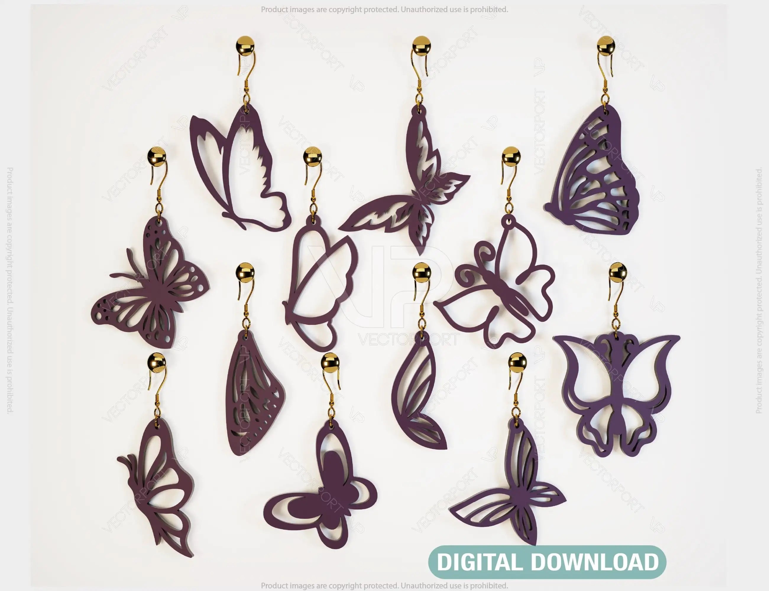Butterfly Earrings 12 different styles Pendant Jewelry svg dxf Glowforge Pendants laser cut |#U019|