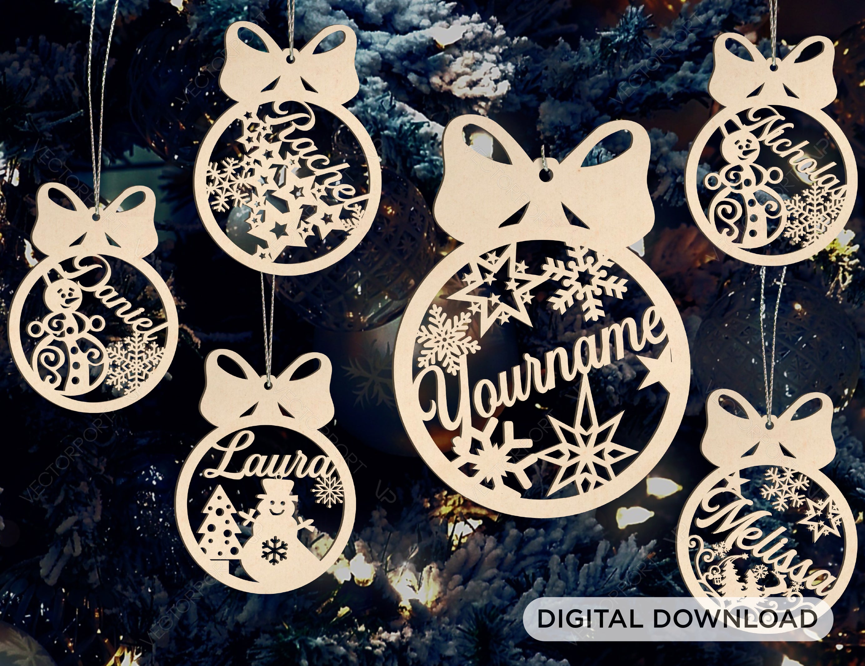 Christmas balls with Custom Name Tree Decorations | SVG, DXF, AI |#011|