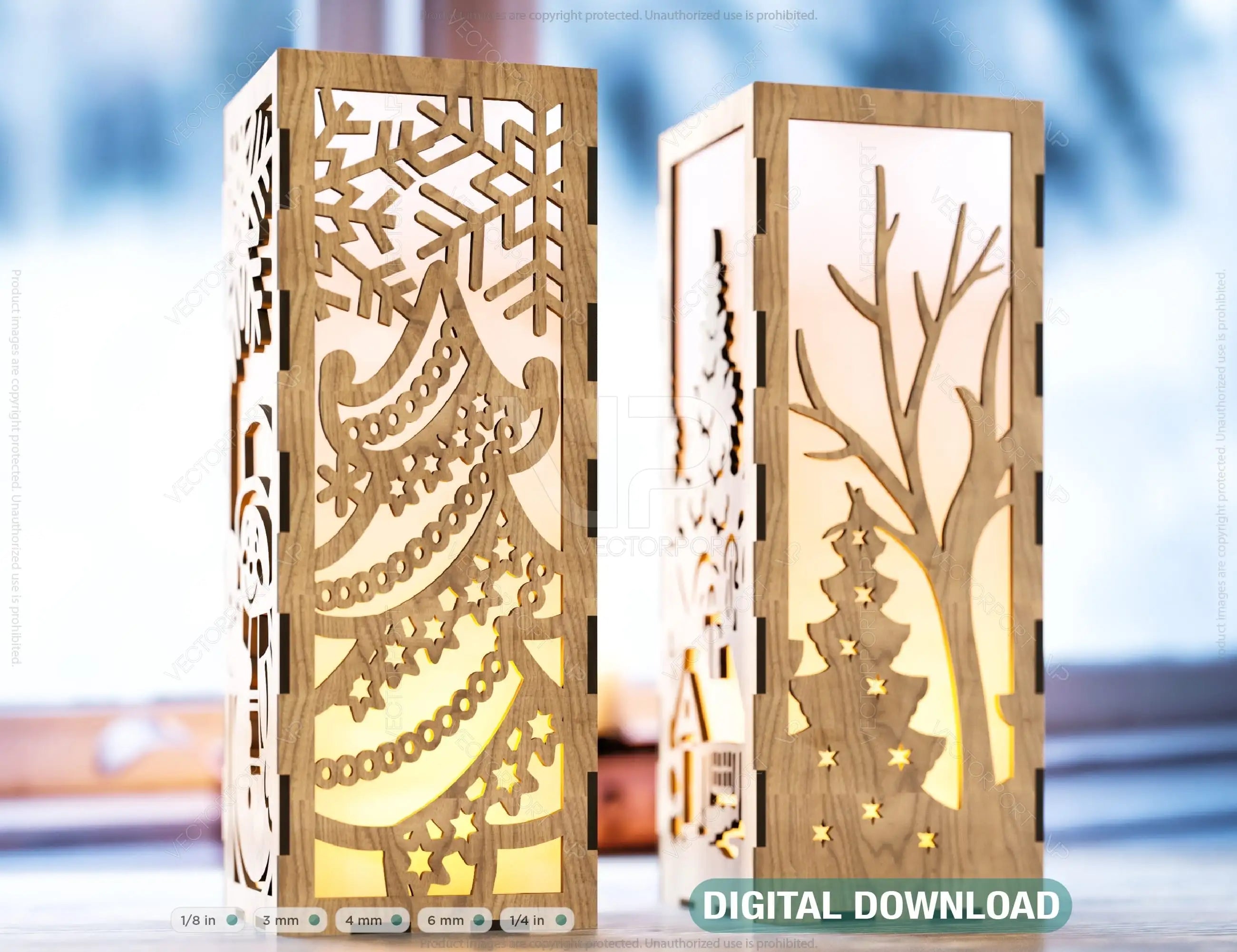 Christmas Decorative Wooden table Lamp Lantern New Year Candle Holder Laser Cut Tea light SVG Cut Plan |#U158|