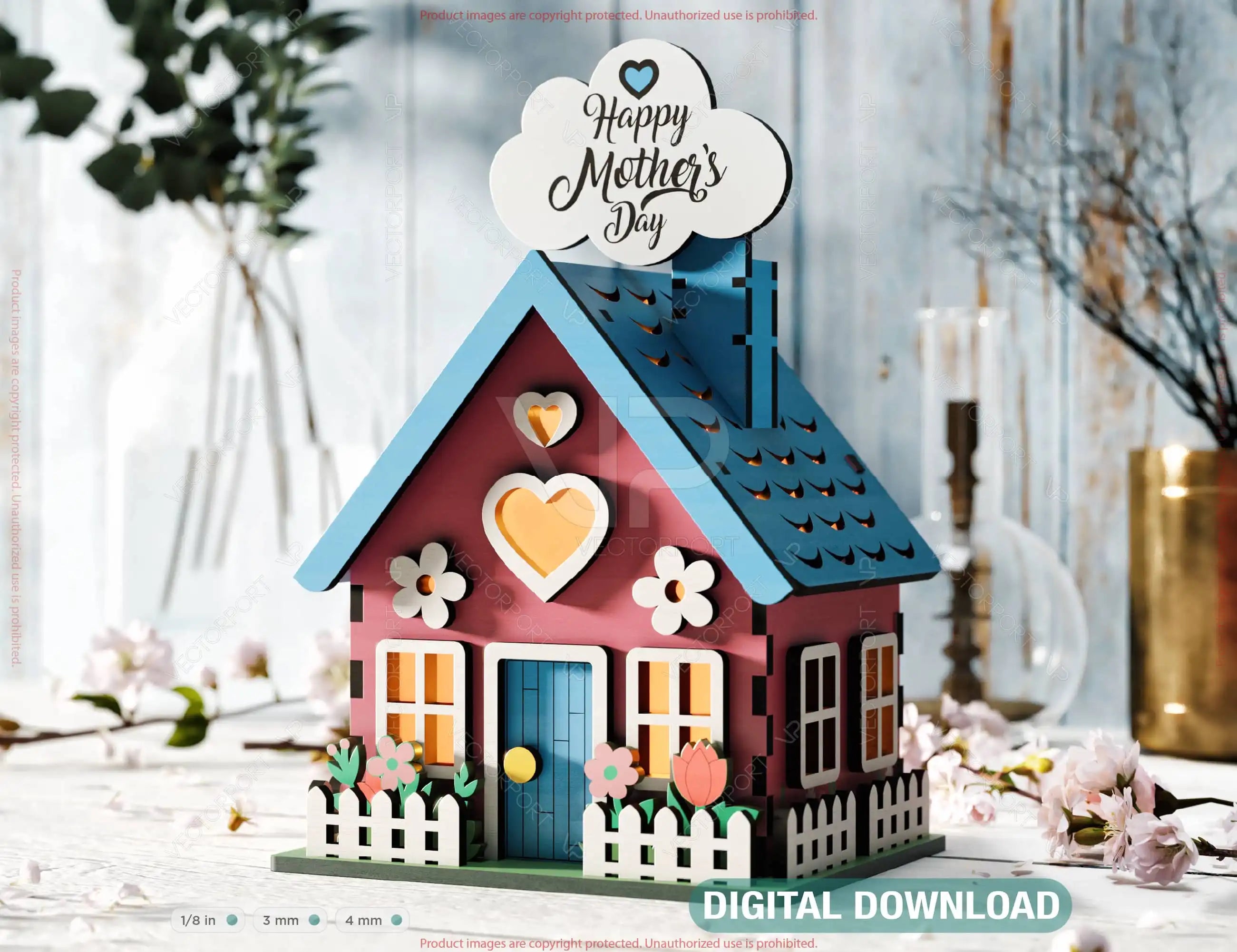 This digital download provides the files to create a charming miniature scene, featuring a quaint cottage adorned with blossoming flowers and surrounded by a picturesque landscape.