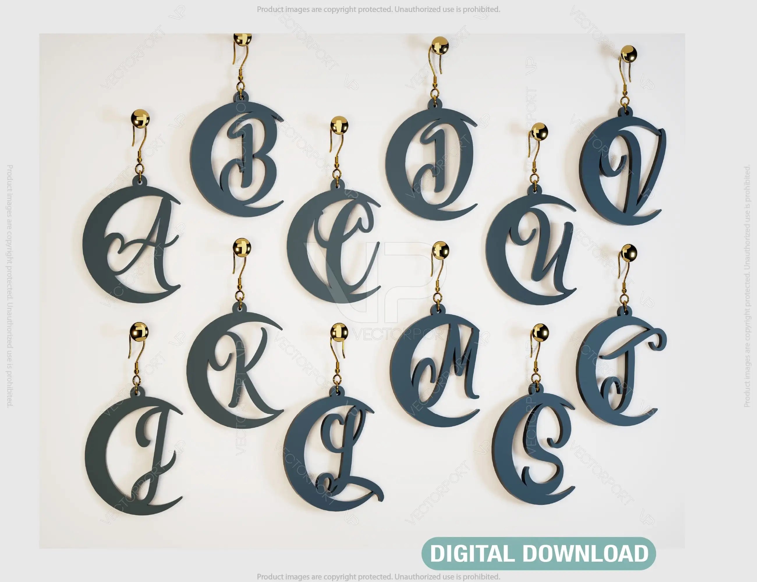 Crescent Alphabet Earrings Craft Jewelry Pendants Set Drop Laser cut Earrings SVG Template Silhouette Cut Files, Cricut Cut Files |#U017|
