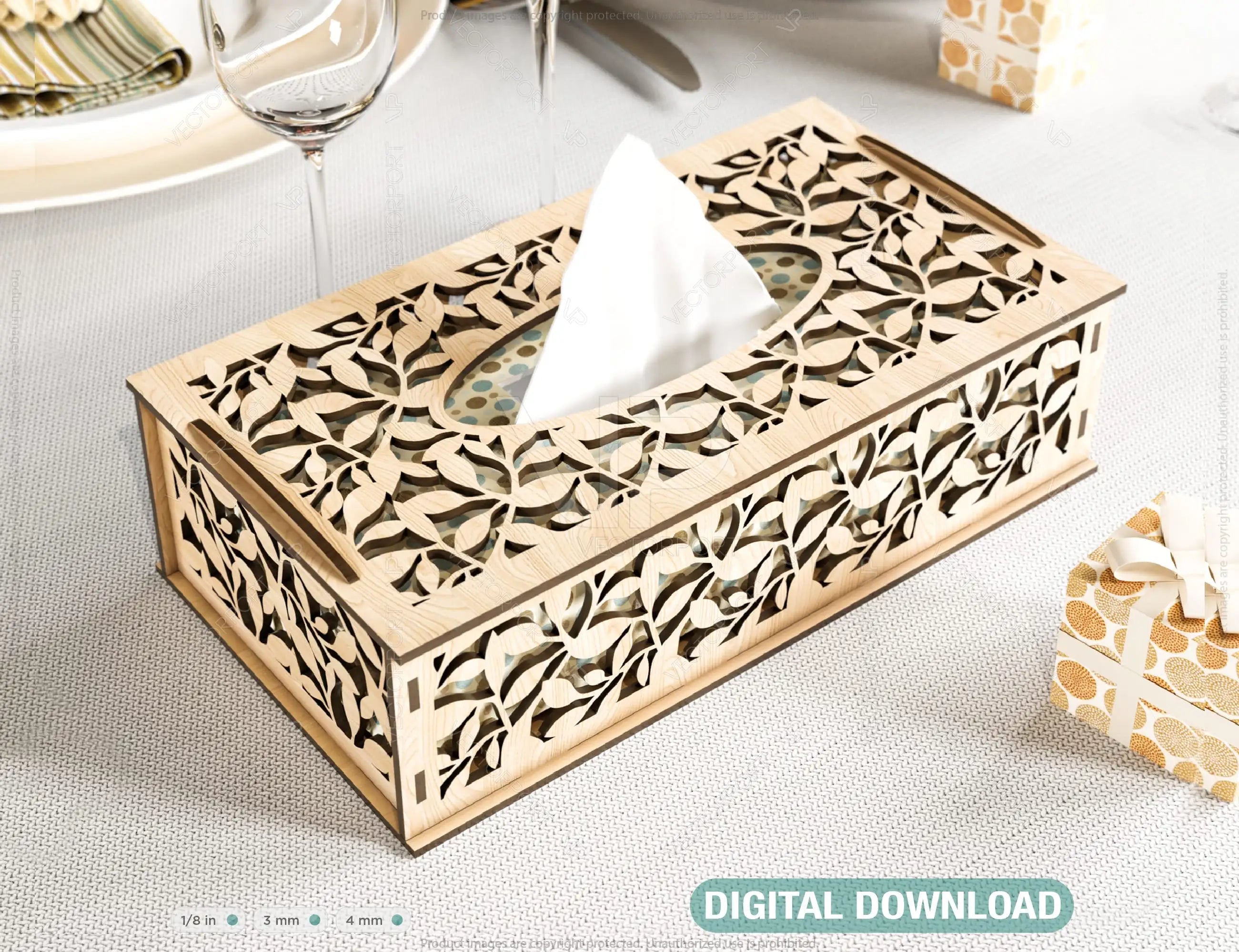 Decorative Laser Cut Tissue Box heart shape Tabletop wooden napkin cover Glowforge SVG |#167|