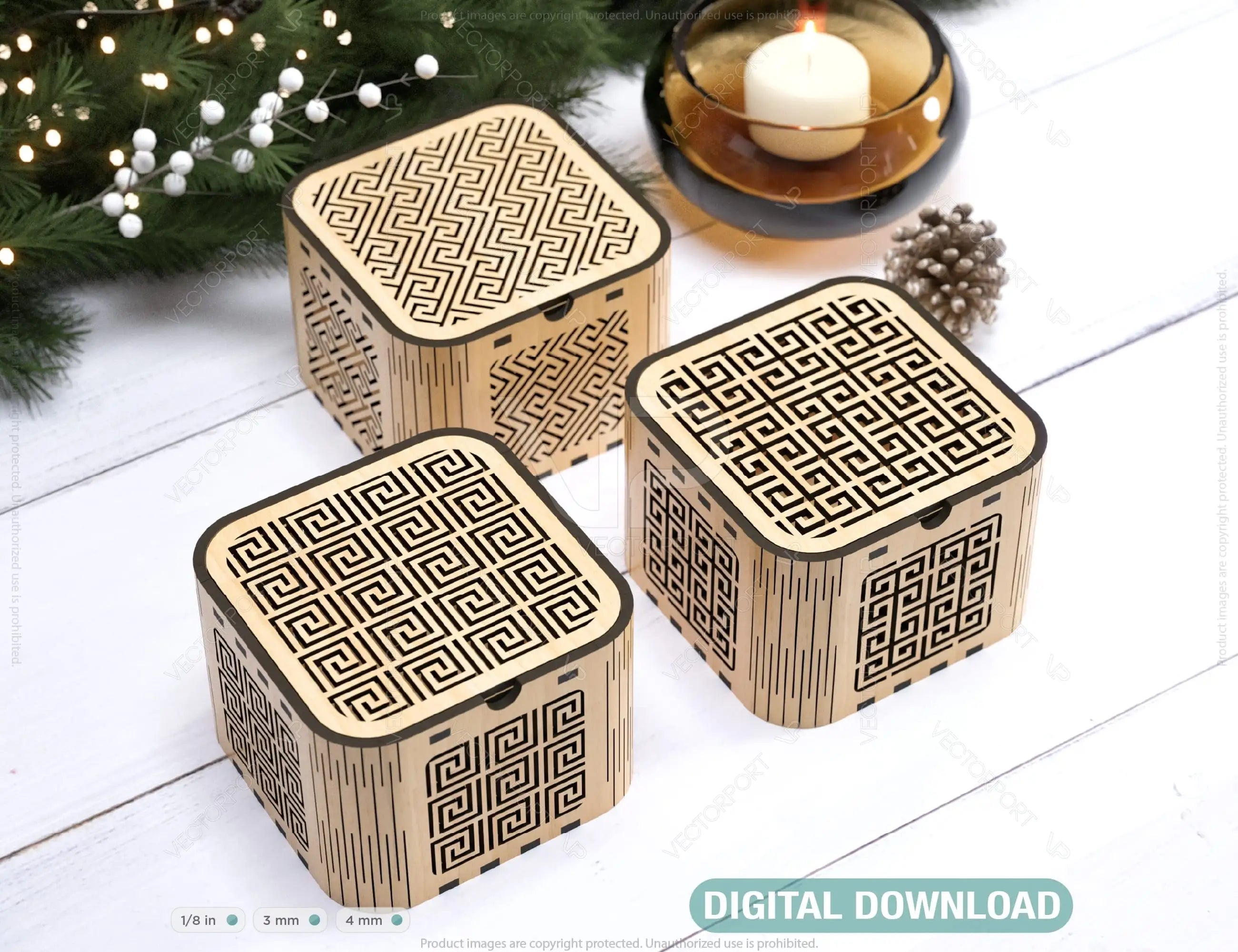 Decorative Wooden Gift Box laser cut jeweler case Wedding Love vector model Greek Key Pattern Digital Download |#U294|