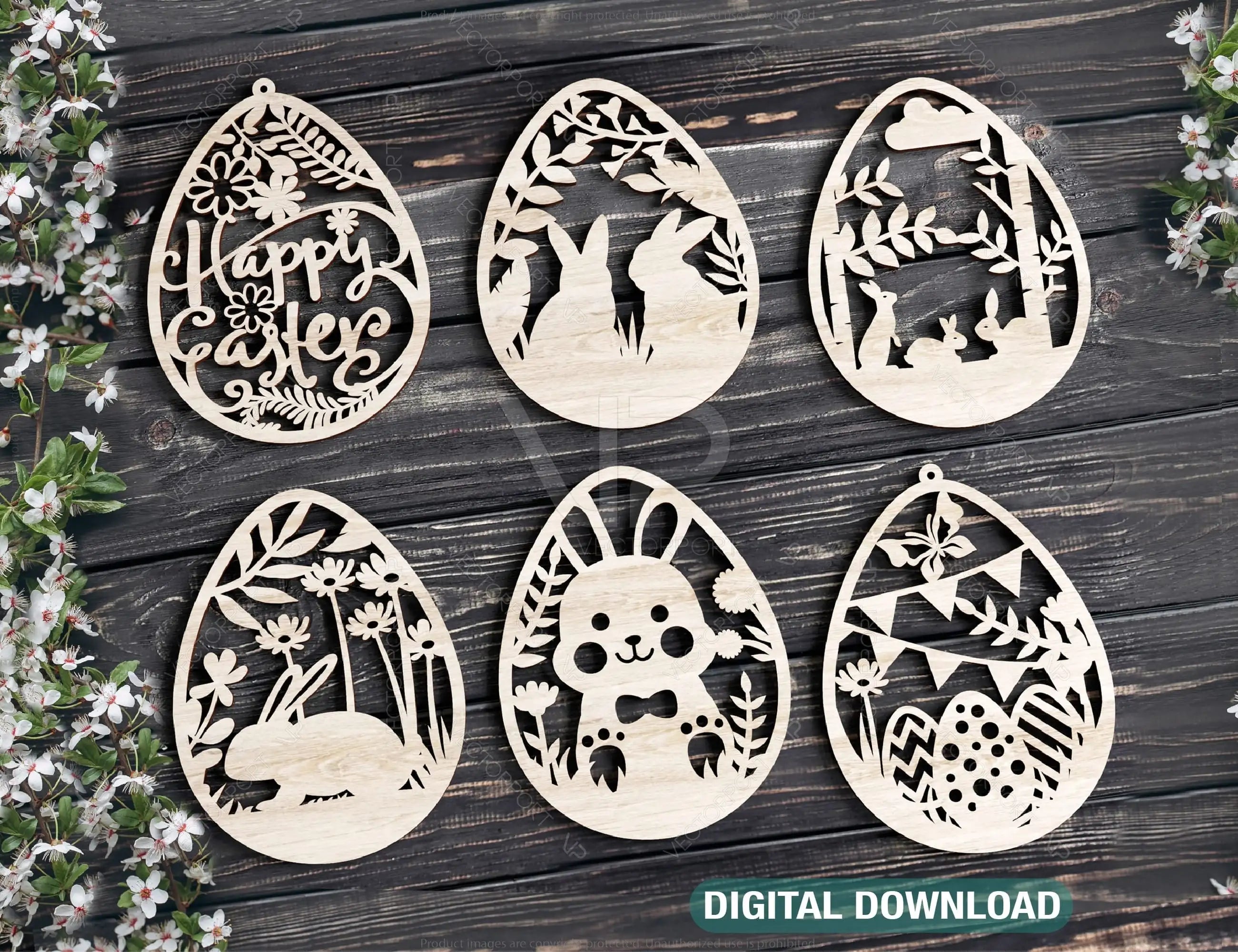 Easter Ornaments Laser Cut Files Egg SVG bundle, Floral 6 Elements Digital Download |#U190|