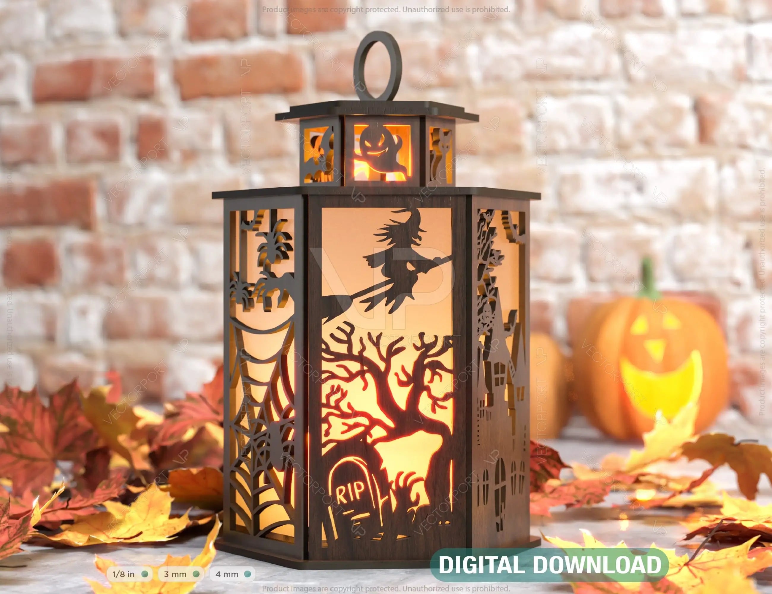 Halloween Candle Tealight Holder Pumpkin Witch Spider Lantern Spooky Scene Lamp Digital Download SVG |#U267|