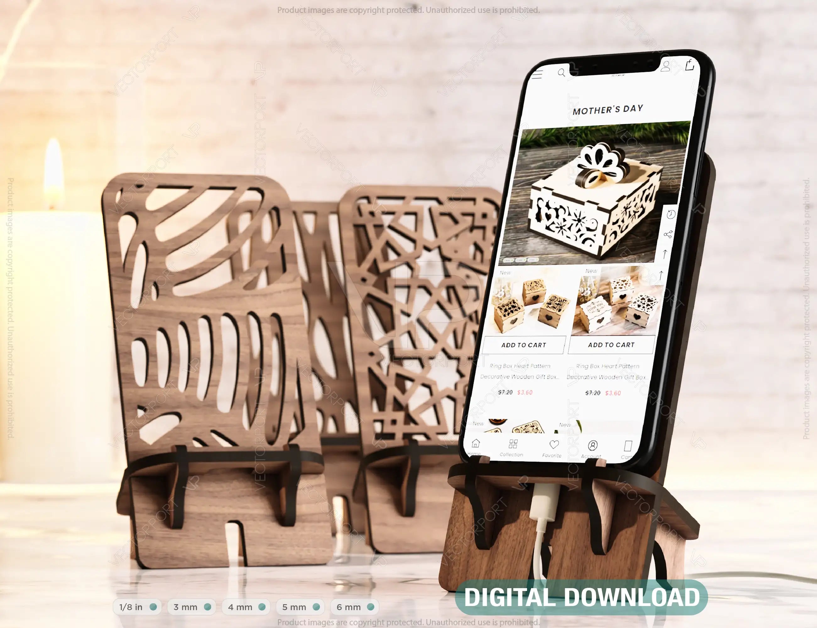 Laser Cut Wooden Mobile Phone Stand Cell Phone Holder Digital Download SVG |#184|