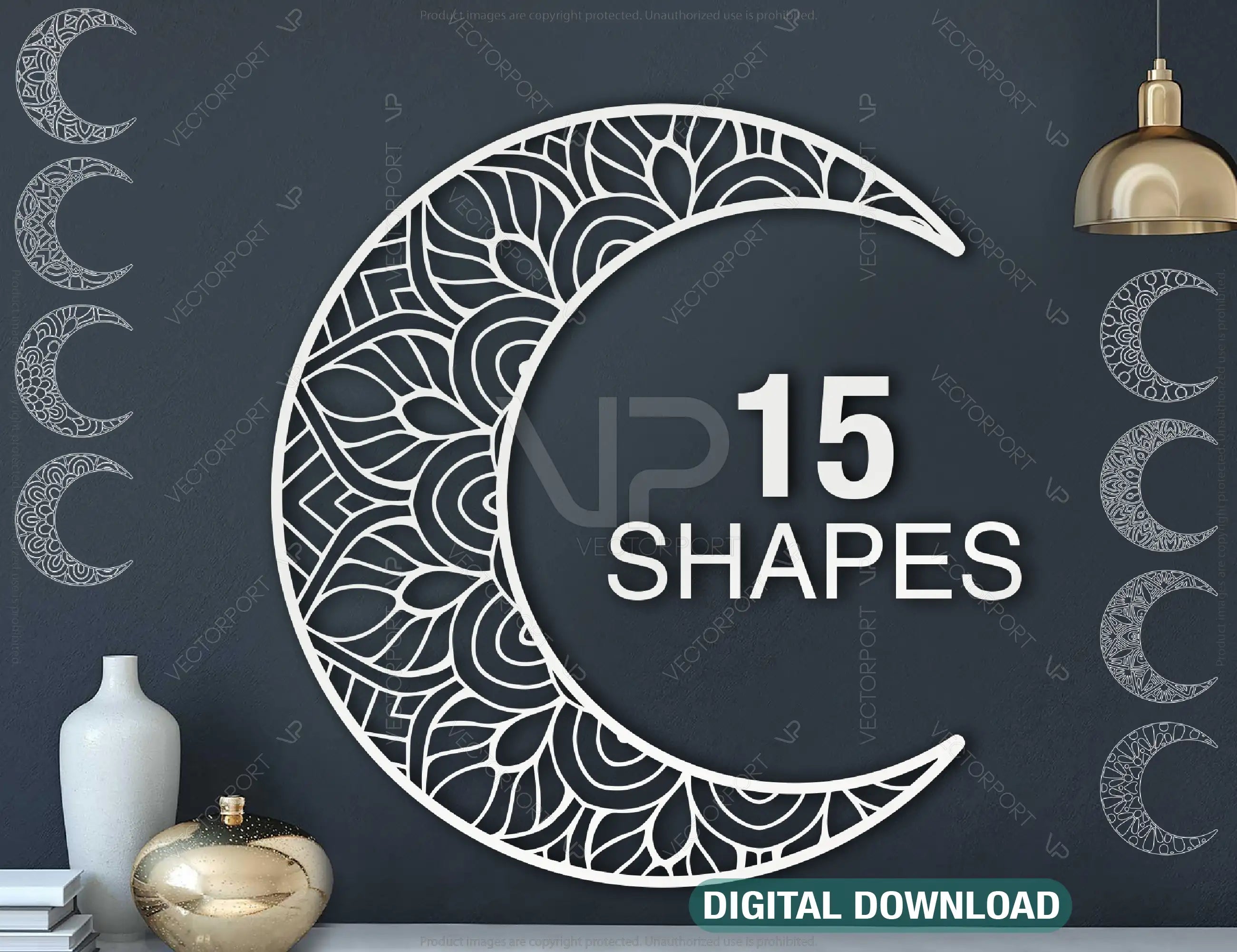 Moon shape Mandala Wall décor | SVG, DXF, AI |#021|