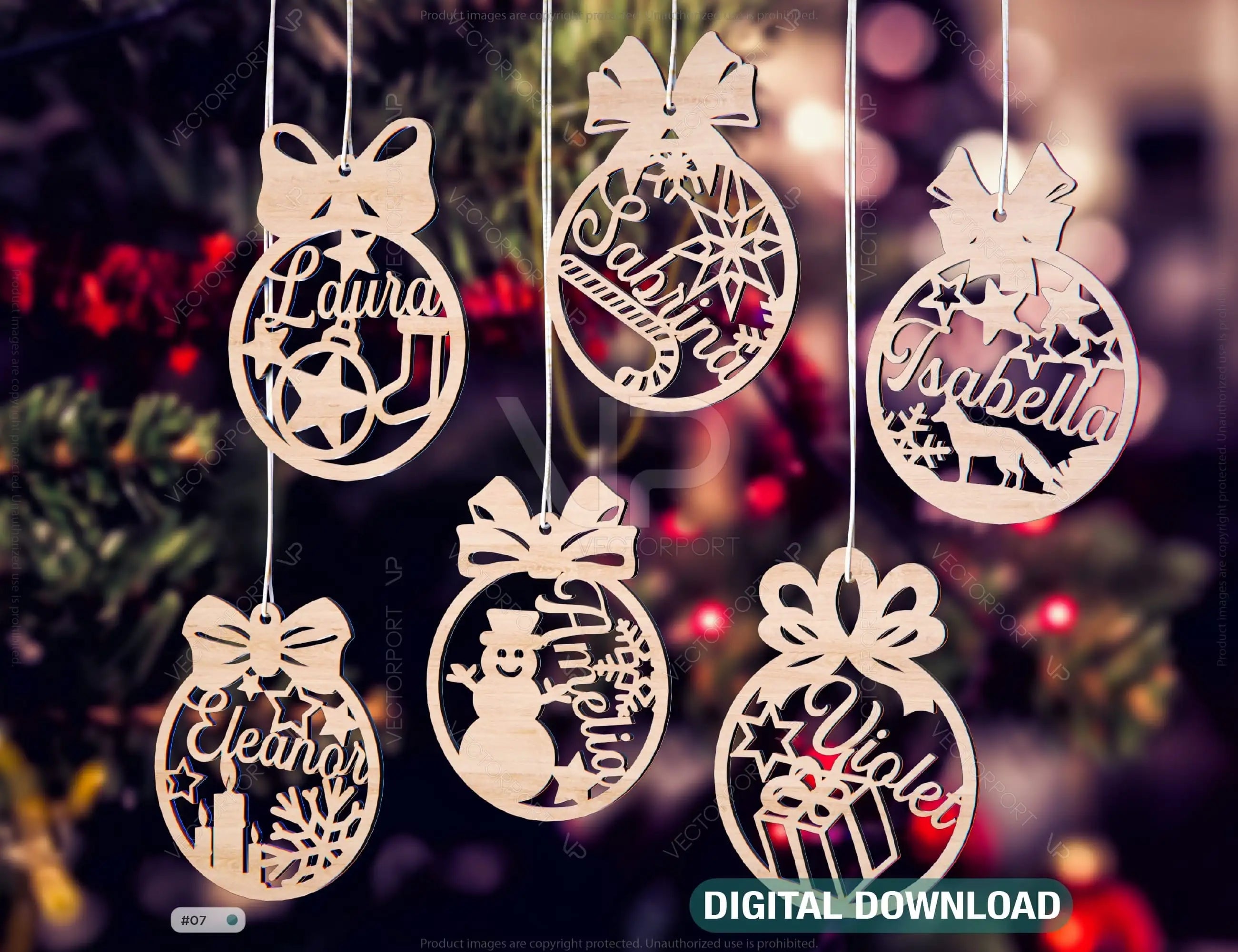 Personalized Christmas balls Tree Decorations with Name Craft Hanging Bauble Paper art templates cut file |#U099|