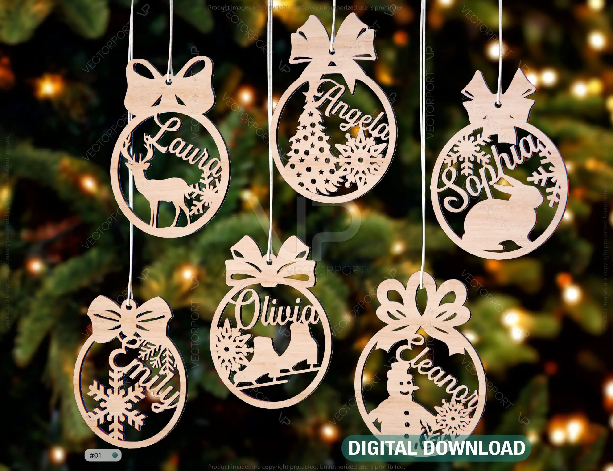 Personalized Christmas Balls Tree Decorations with Name Craft Pendants Hanging Bauble Paper art templates cut file |#U093|