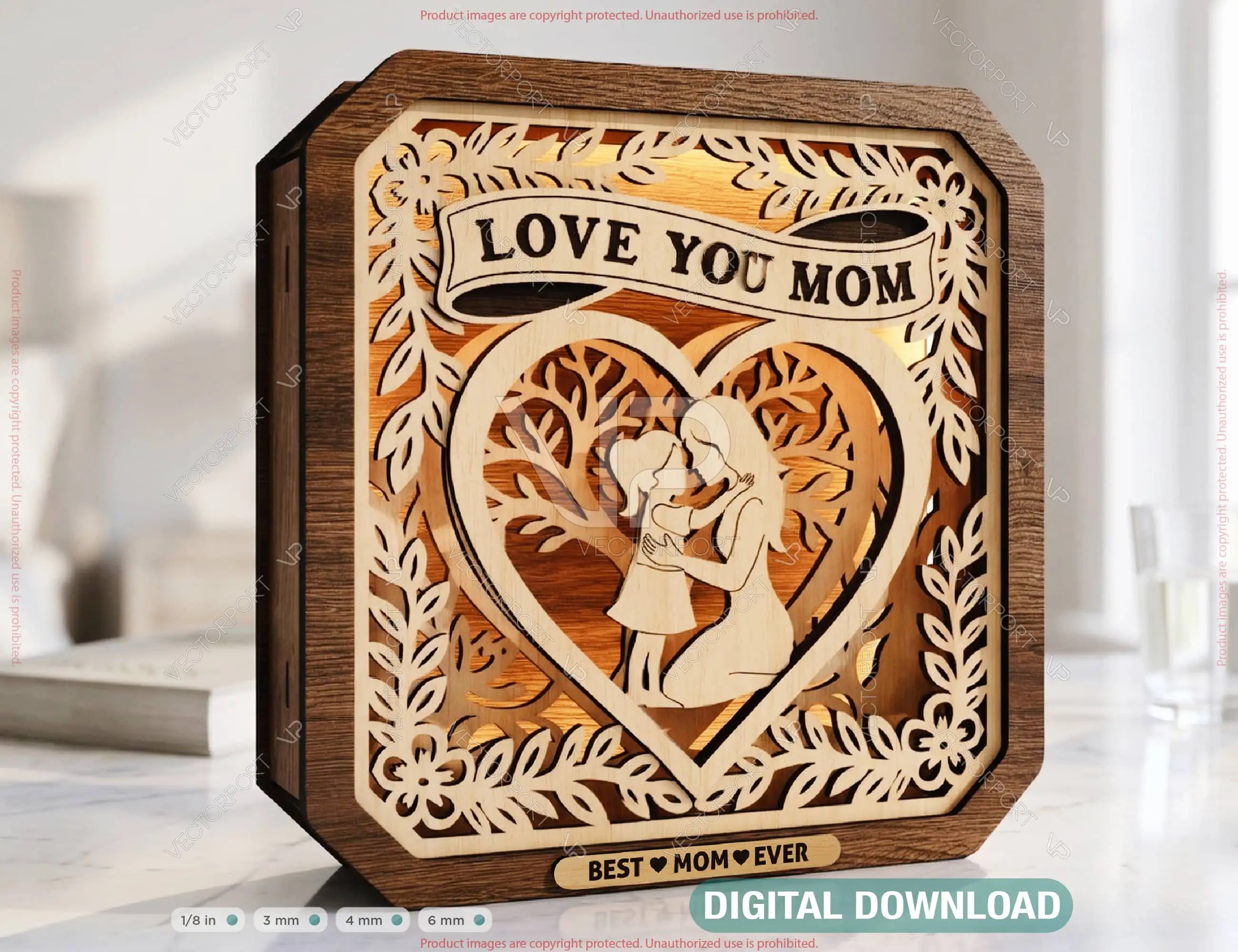 Create a warm and meaningful atmosphere with this beautifully crafted layered wooden LED shadow box, designed especially for Mother’s Day. Featuring a delicate mother and child silhouette, this piece combines emotional design with modern laser-cut craftsmanship.