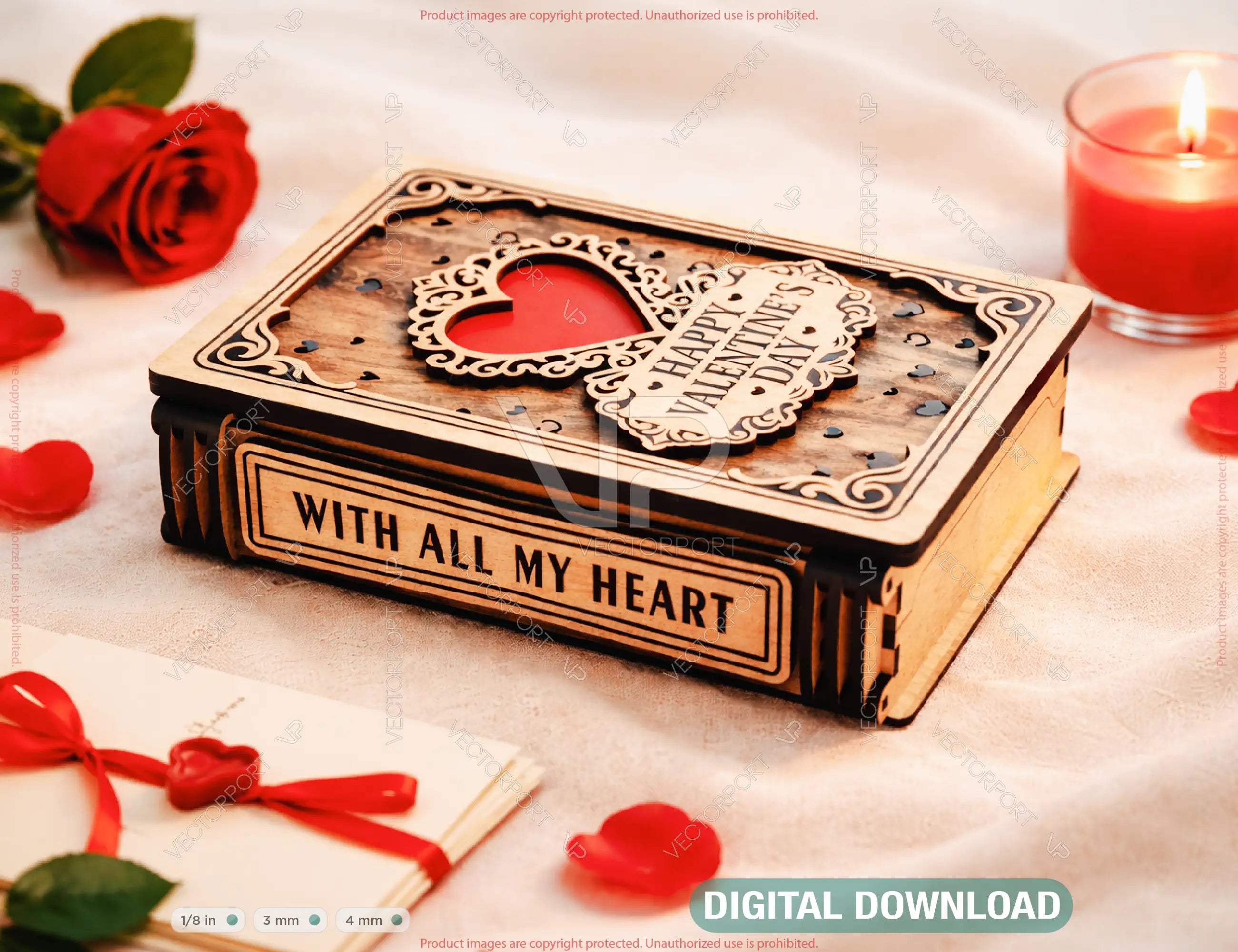 💕 Create a heartfelt and elegant gift with this romantic laser-cut wooden book box, designed especially for Valentine’s Day, anniversaries, weddings, and love-themed occasions.