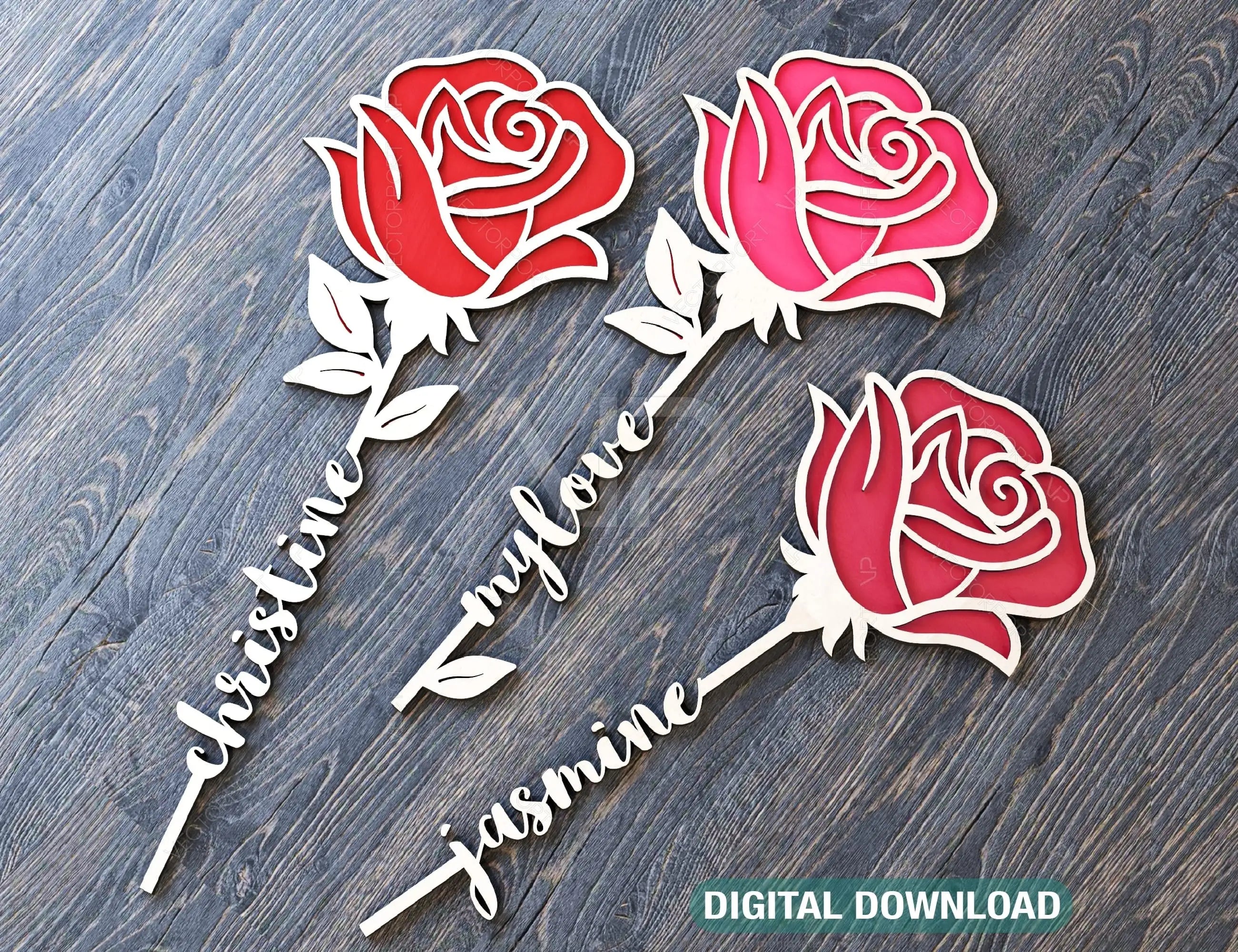 Rose Flower Personalized Laser Cut Out Art Valentine Day Acrylic wood Flower with name editable Cut Files Digital Product |#U178|