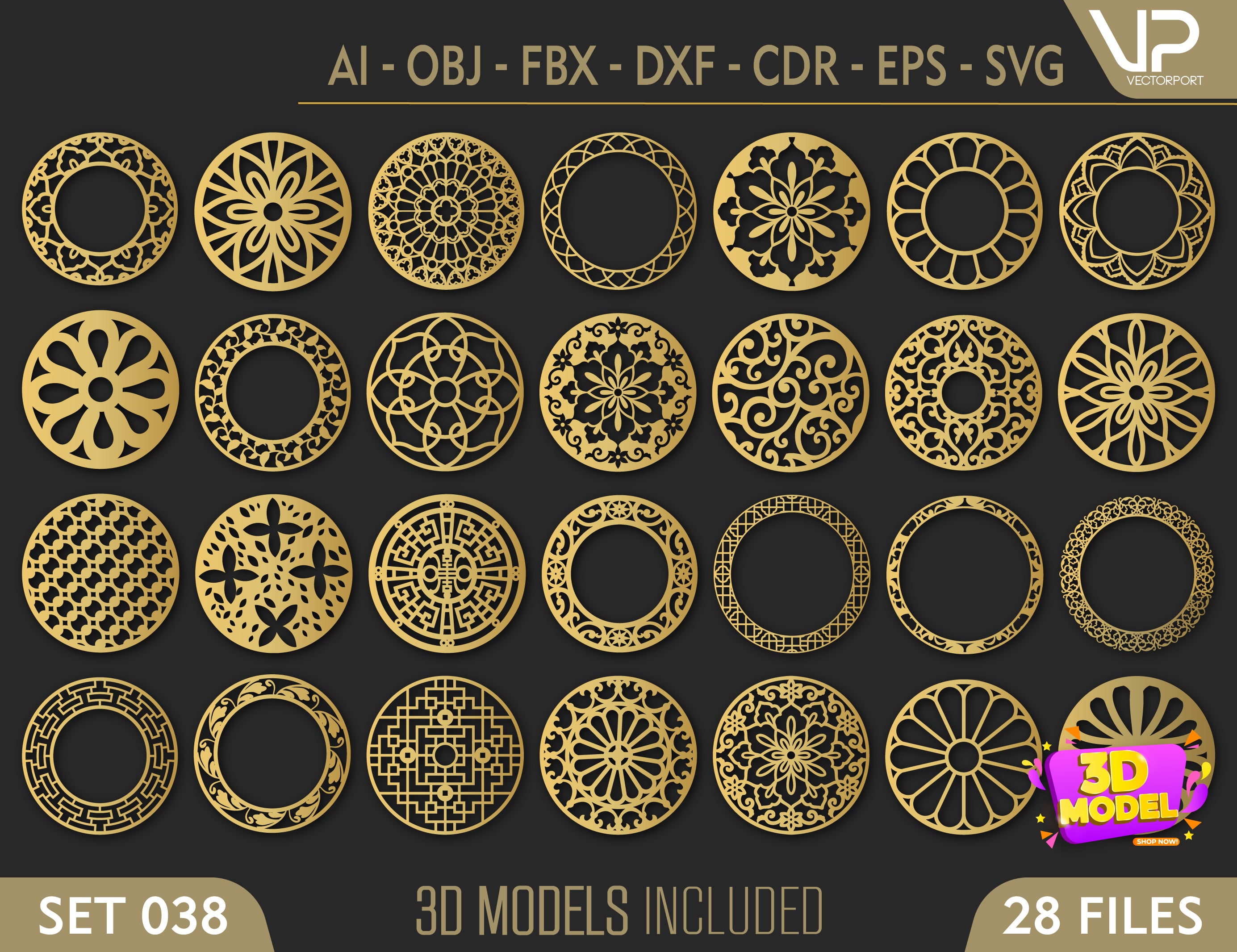 Round Abstract Pattern Panel Templates CNC Laser Cutting File | SVG, DXF, AI |#C038|