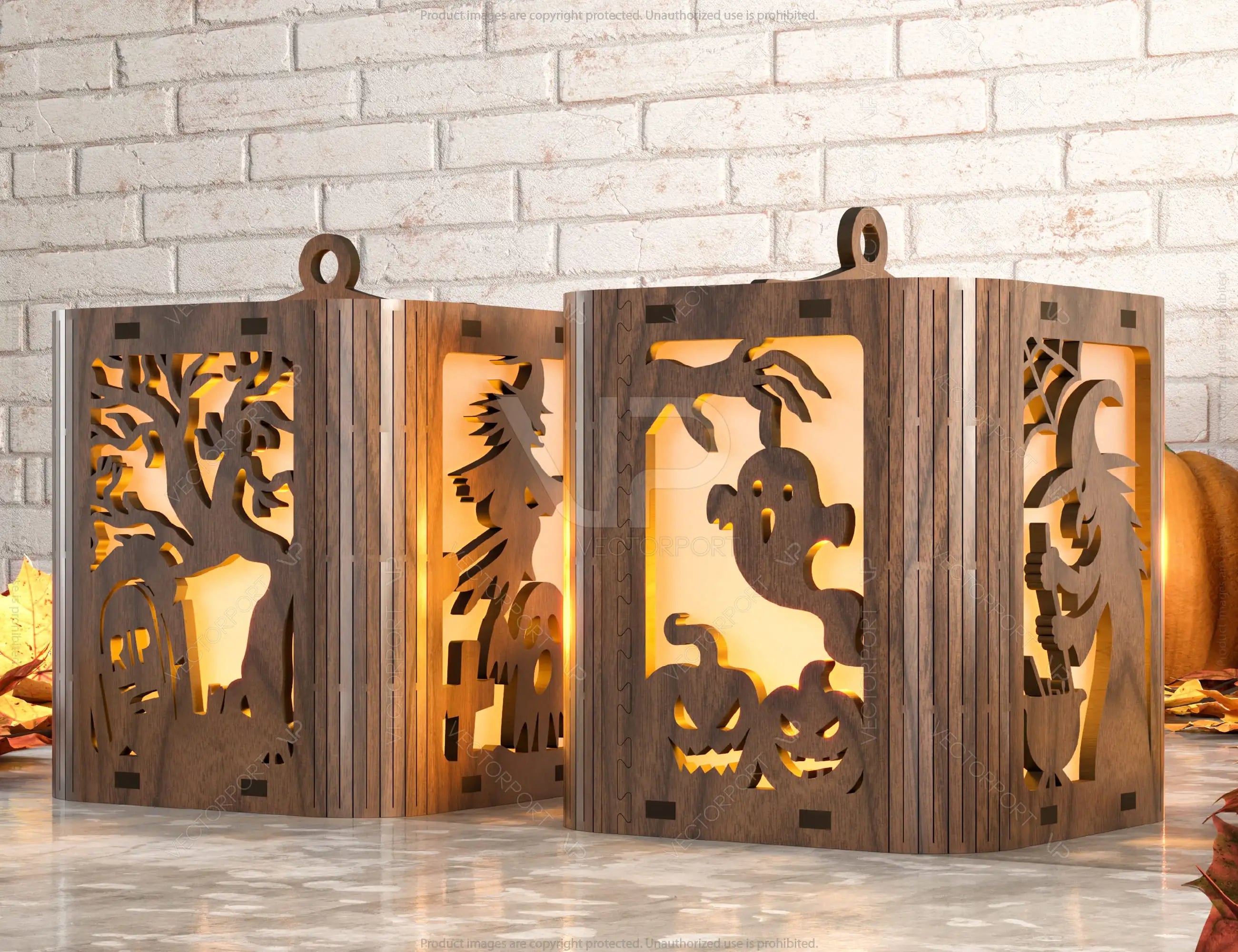 Spooky Scene Halloween Candle Holder Pumpkin Tealight Witch Spider Lantern Lamp Hanging Tree Decoration Candle Holder Digital Download |#235|