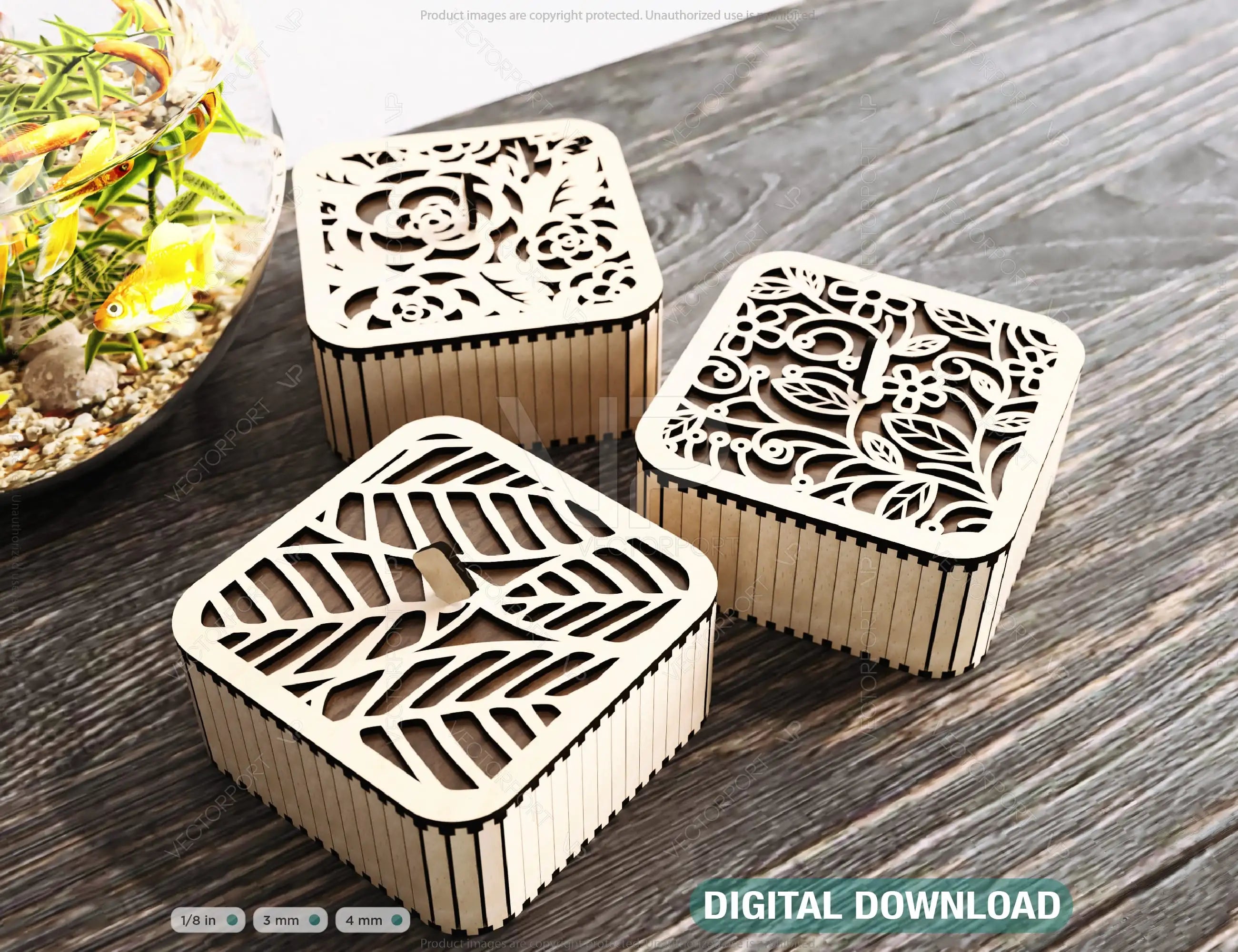 Square Shaped Wooden Gift Box Jewelry laser cut Box template Wedding Love story Digital Download | SVG, DXF |#175|