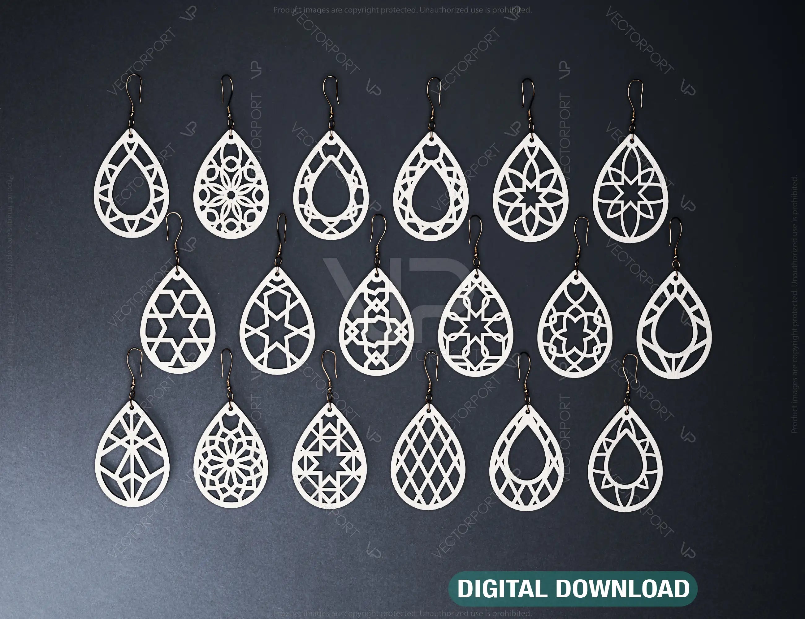 18 Earrings bundle Laser Cut tear drop templates for Women Jewelry Wooden Glowforge Pendants | SVG, DXF, AI |#130|