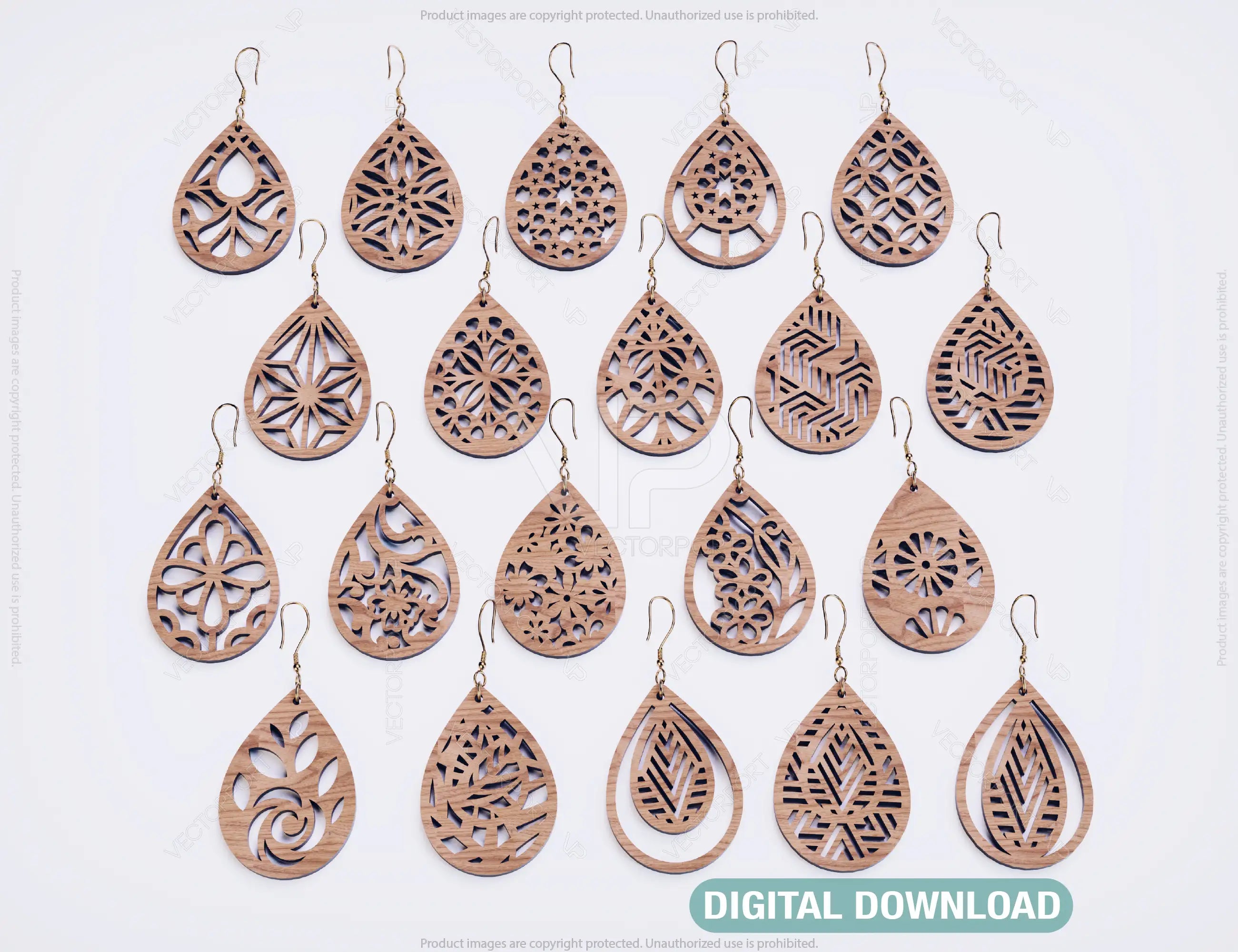 20 Earrings bundle Laser Cut tear drop templates for Women Jewelry Wooden Glowforge Pendants | SVG, DXF, AI |#121|