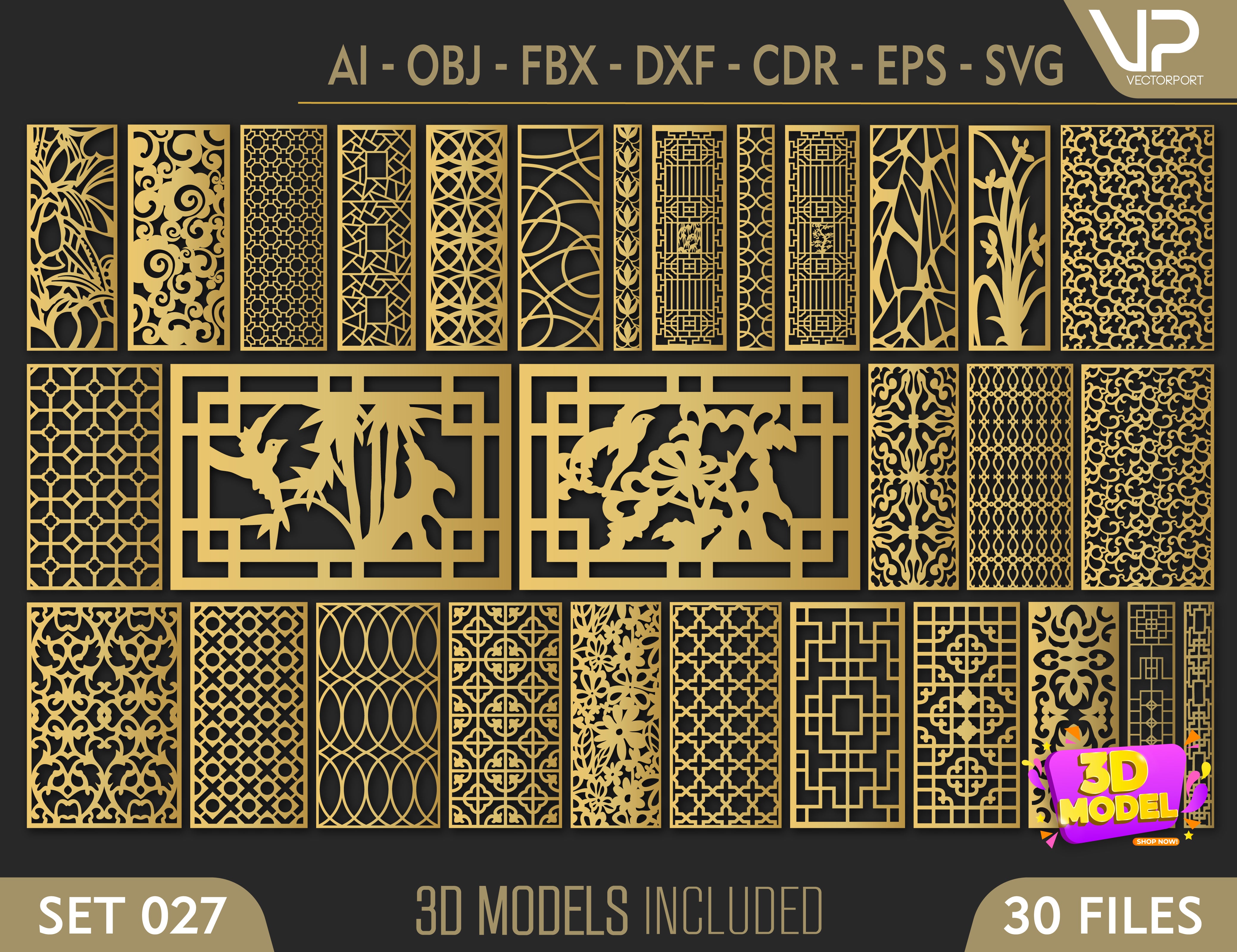 Abstract Pattern Panel Templates CNC Laser Cutting File | SVG, DXF, AI |#C027|