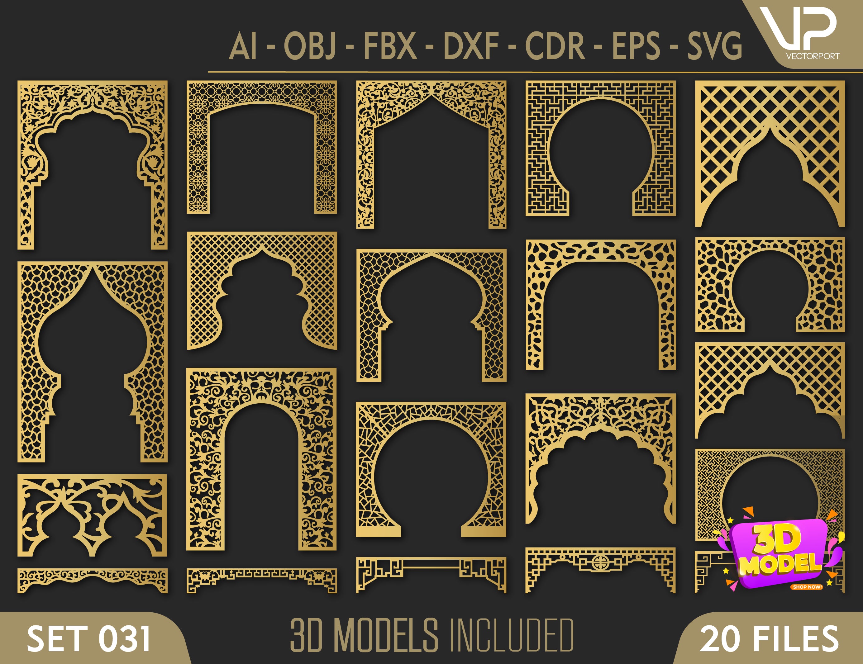 Abstract Pattern Panel Templates CNC Laser Cutting File | SVG, DXF, AI |#C031|