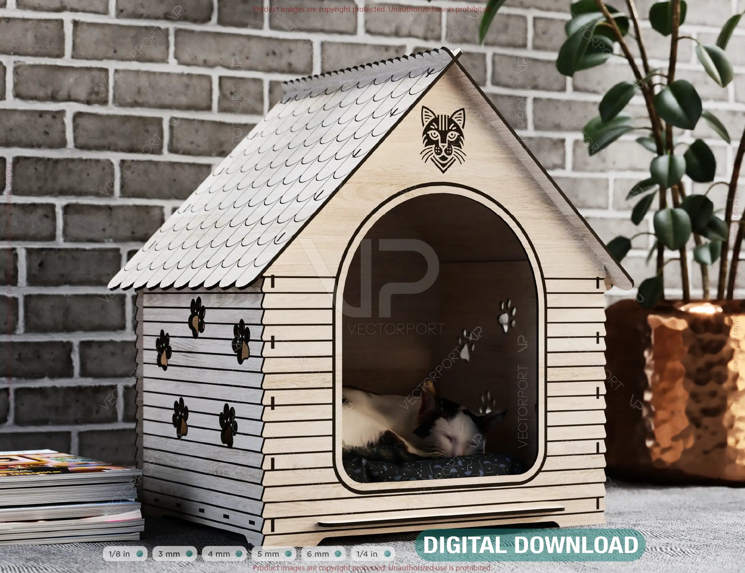 Create a one-of-a-kind home for your furry friend with this intricate laser-cut house design!