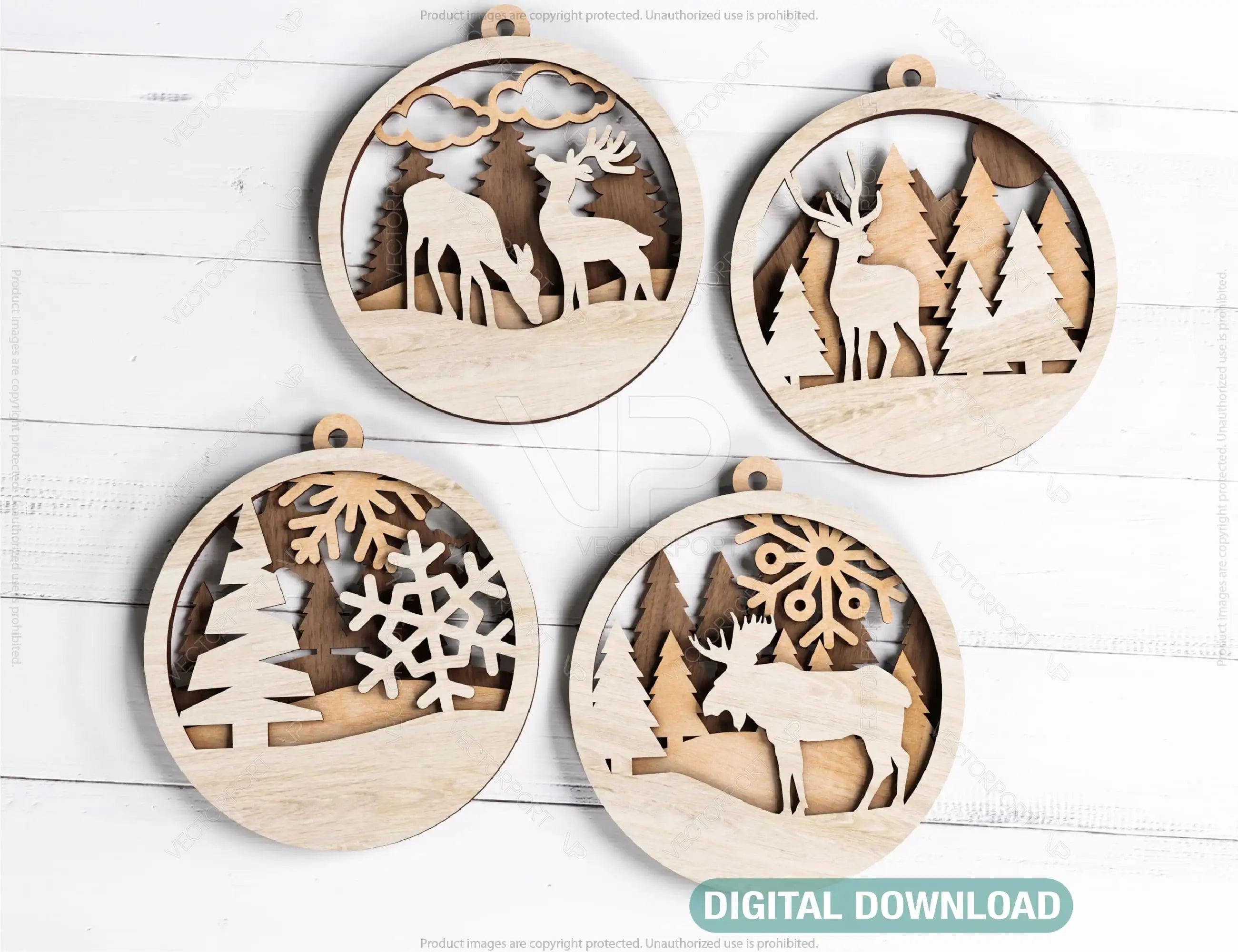 Christmas balls Tree Decorations Craft Hanging Bauble Paper art wood carving stencil laser cut templates  |#U101|