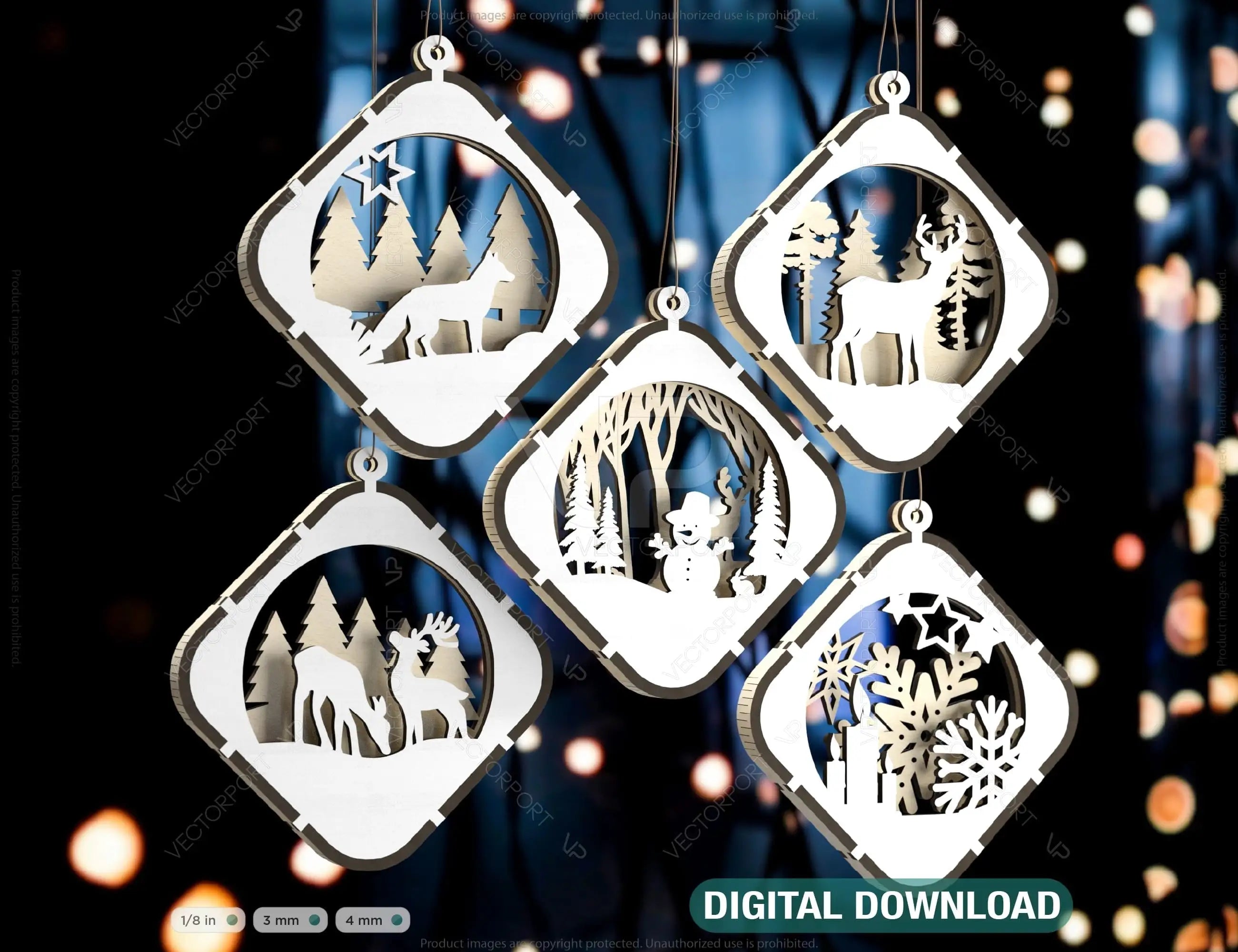 Christmas Balls Tree Decorations Craft Hanging Bauble Snowy Scene Deer New Year Décor Laser cut Digital Download |#U299|