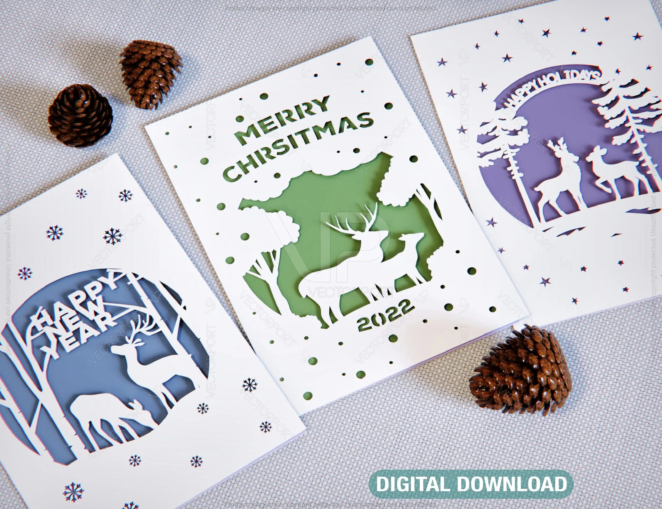 Christmas Tree Cards Laser Cut Paper Invitation Greeting cricut template Ornament Papercut | SVG, DXF, AI |#085|