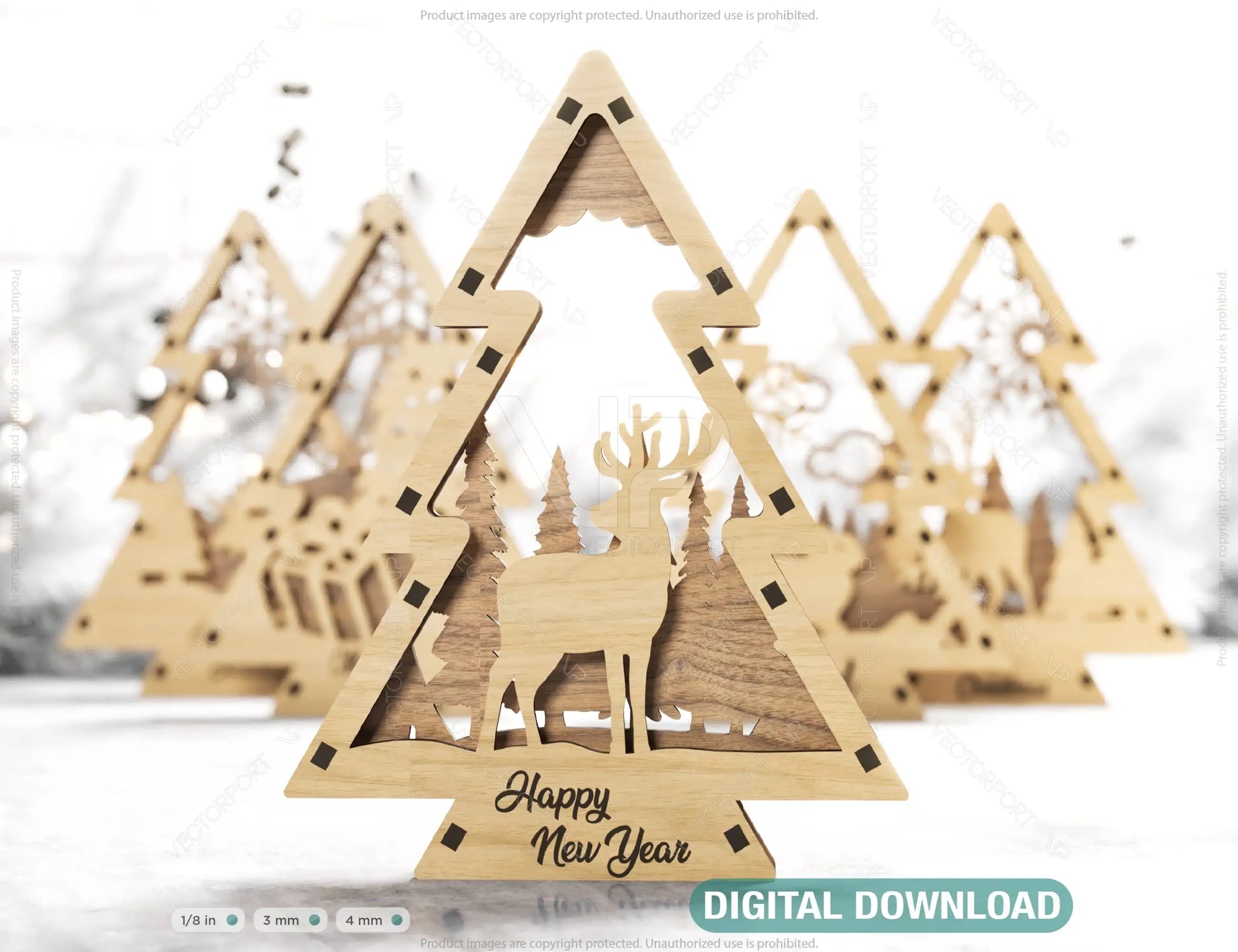 The product in the video - https://vectorportart.com/products/christmas-tree-shaped-ornaments-tree-decorations-craft-standing-new-year-tree-snowy-scene-deer-new-year-laser-cut-digital-download-u325