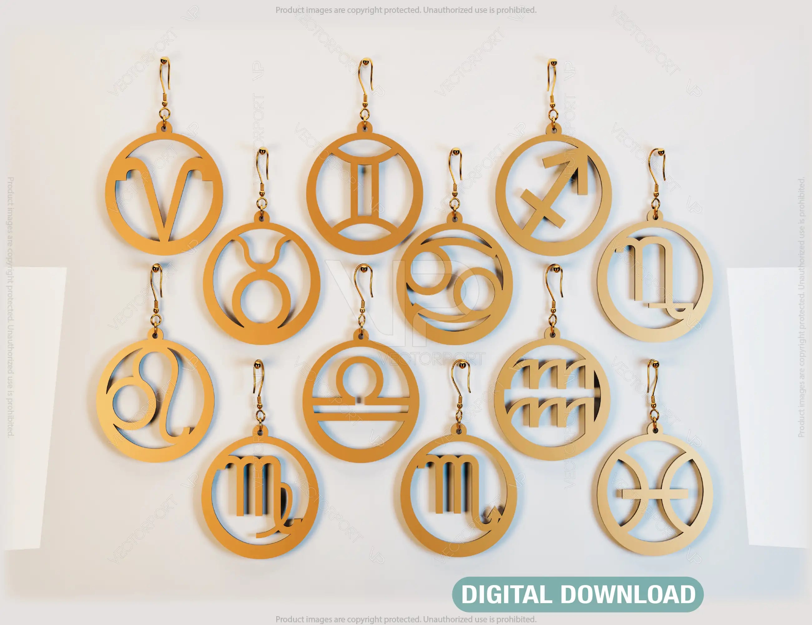 12 Constellation Laser Cut Earrings for Women Zodiac Sign Jewelry Astrology Leo Libra Aries Wooden Glowforge Pendants | SVG, DXF, AI |#119|