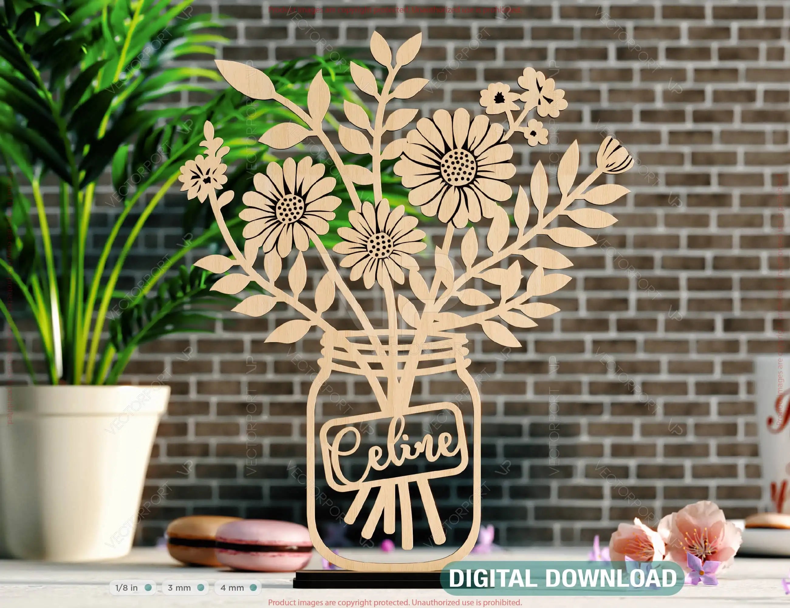 Customizable Standing Daisy Flower Pot – Perfect Gift for Mom, Mother’s Day, Valentine’s Day | Laser Cut DIY Digital Download |#U528|