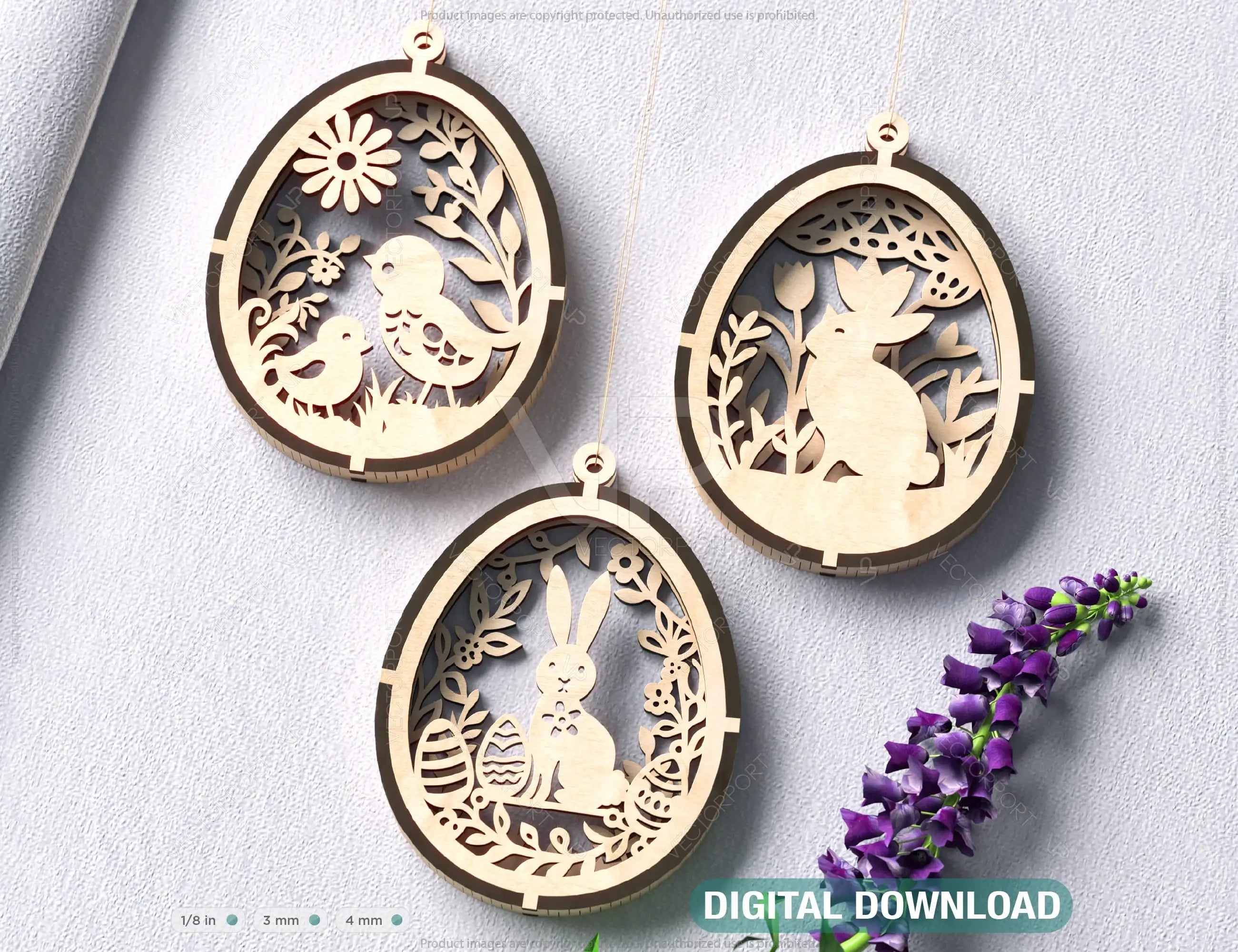 Easter Egg Hanging Ornaments Laser Cut Egg Rabbits SVG layered Decor, Floral Bunny multilayer Digital Download |#U365|