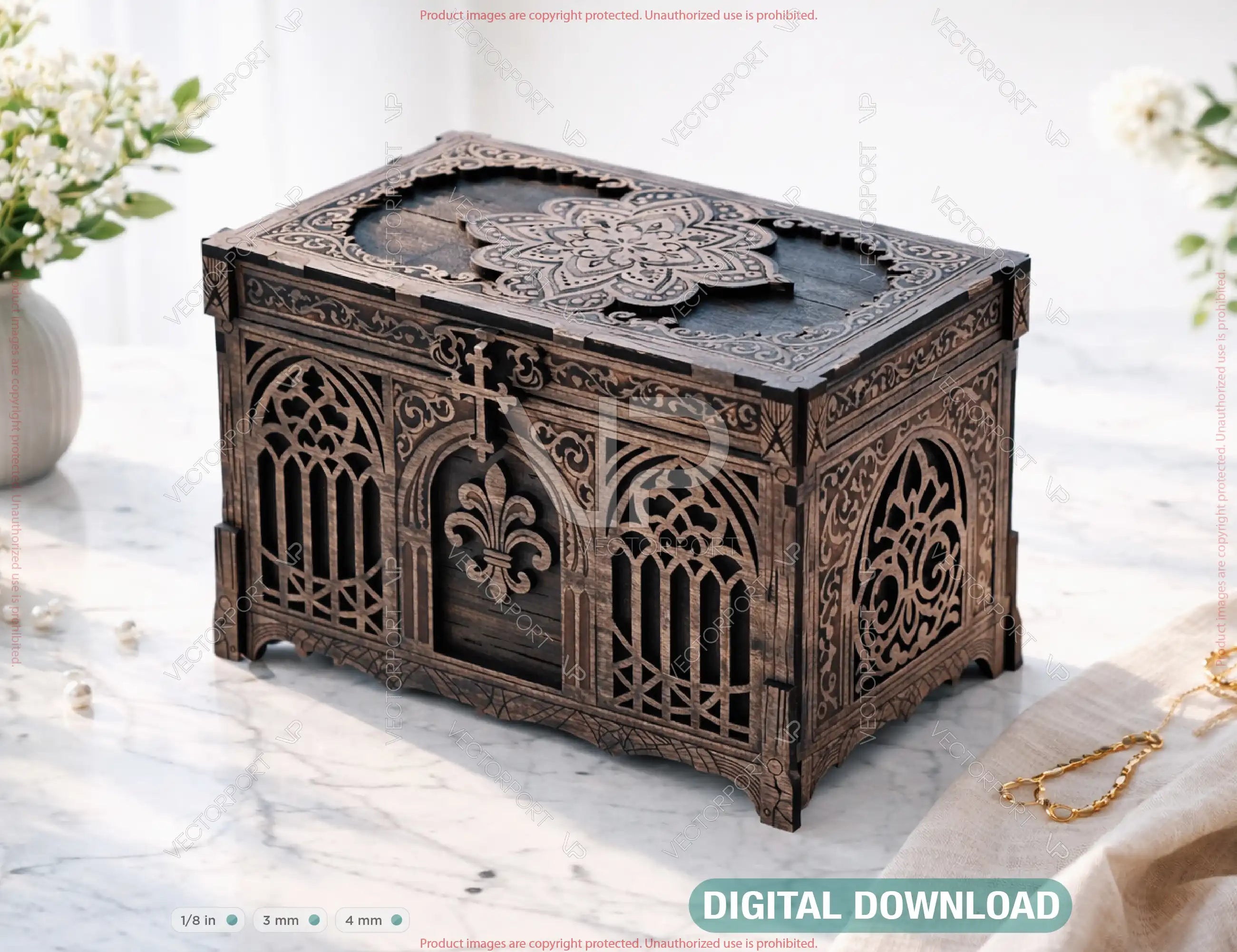 Gothic Wooden Keepsake Box | Laser Cut Storage Chest SVG | Ornate Decorative Gift Box Digital Download |#260|