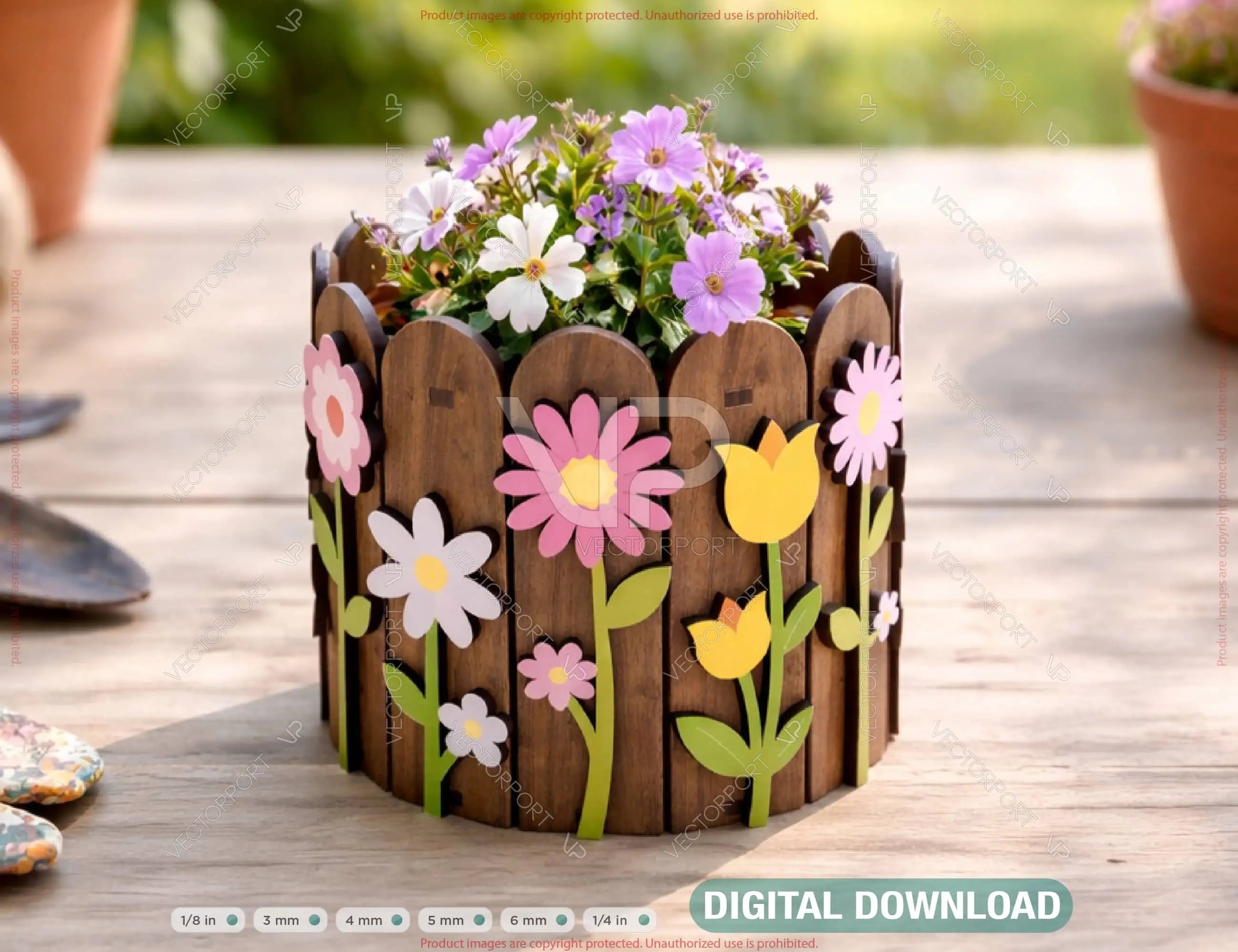 Its charming fence-style design with floral decorations makes it perfect for spring decor, home accessories, office desks, or gift projects.