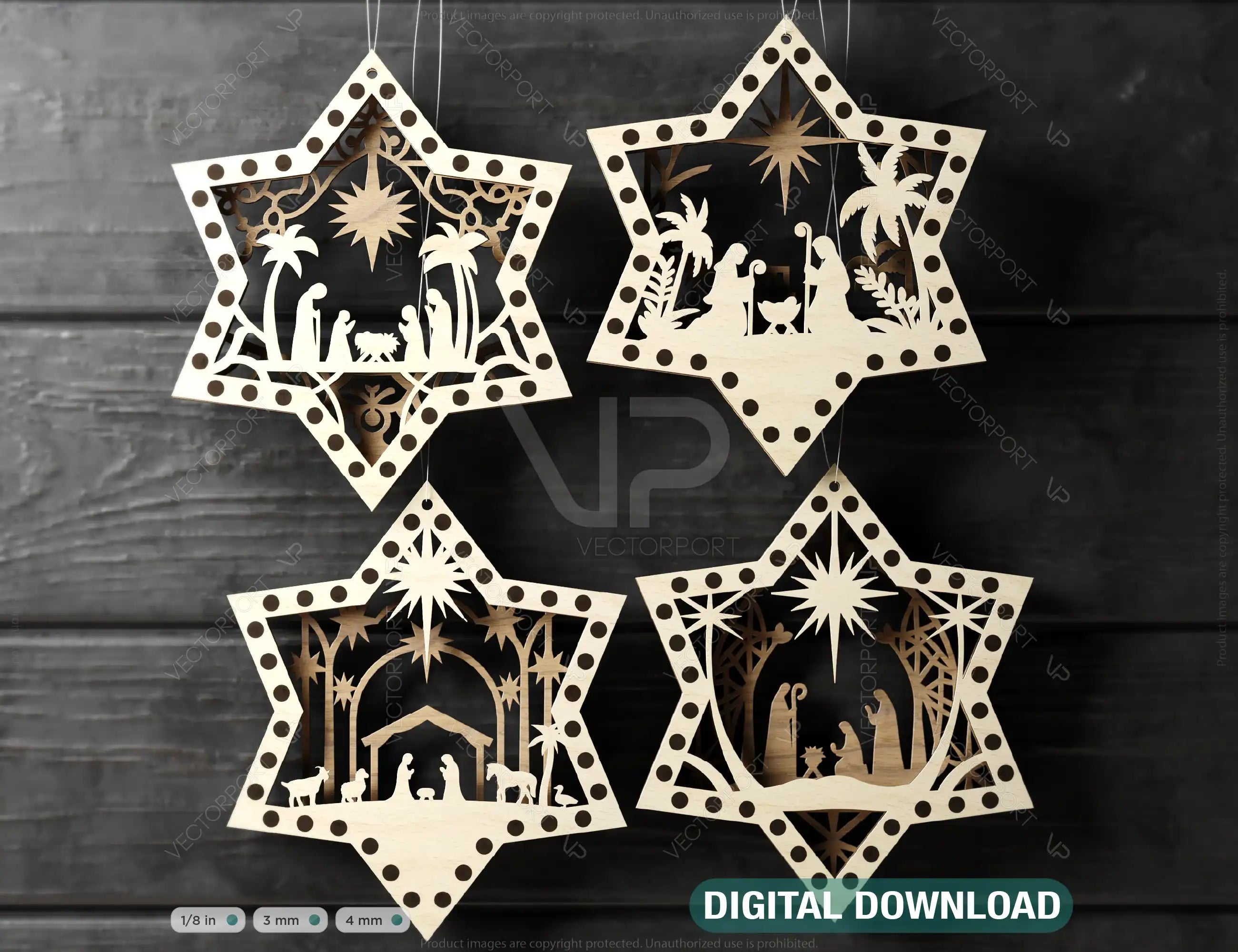 Nativity Star Shape Christmas Ornaments | Baby Jesus Round Hanging Baubles | Christmas Eve Tree Digital Download |#U467|