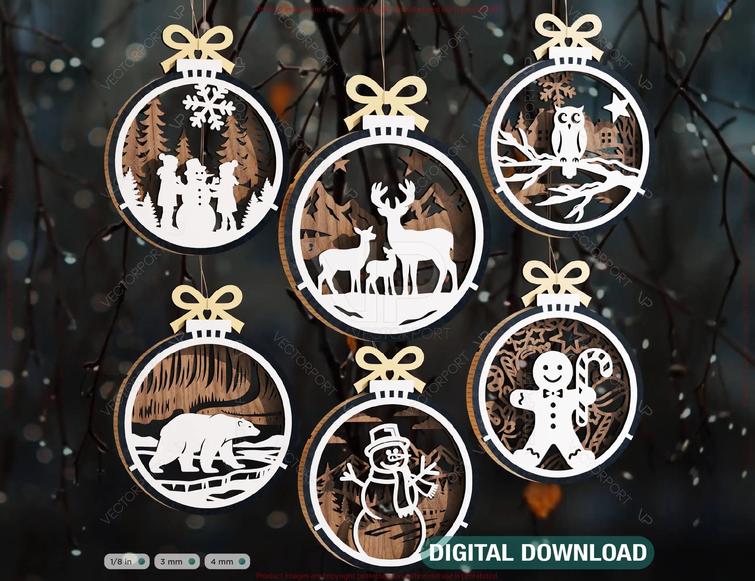 New Year 3D Christmas Ornament Bundle | Laser Cut Snowy Scene Holiday Tree Hanging Baubles | Digital Download |#U629|