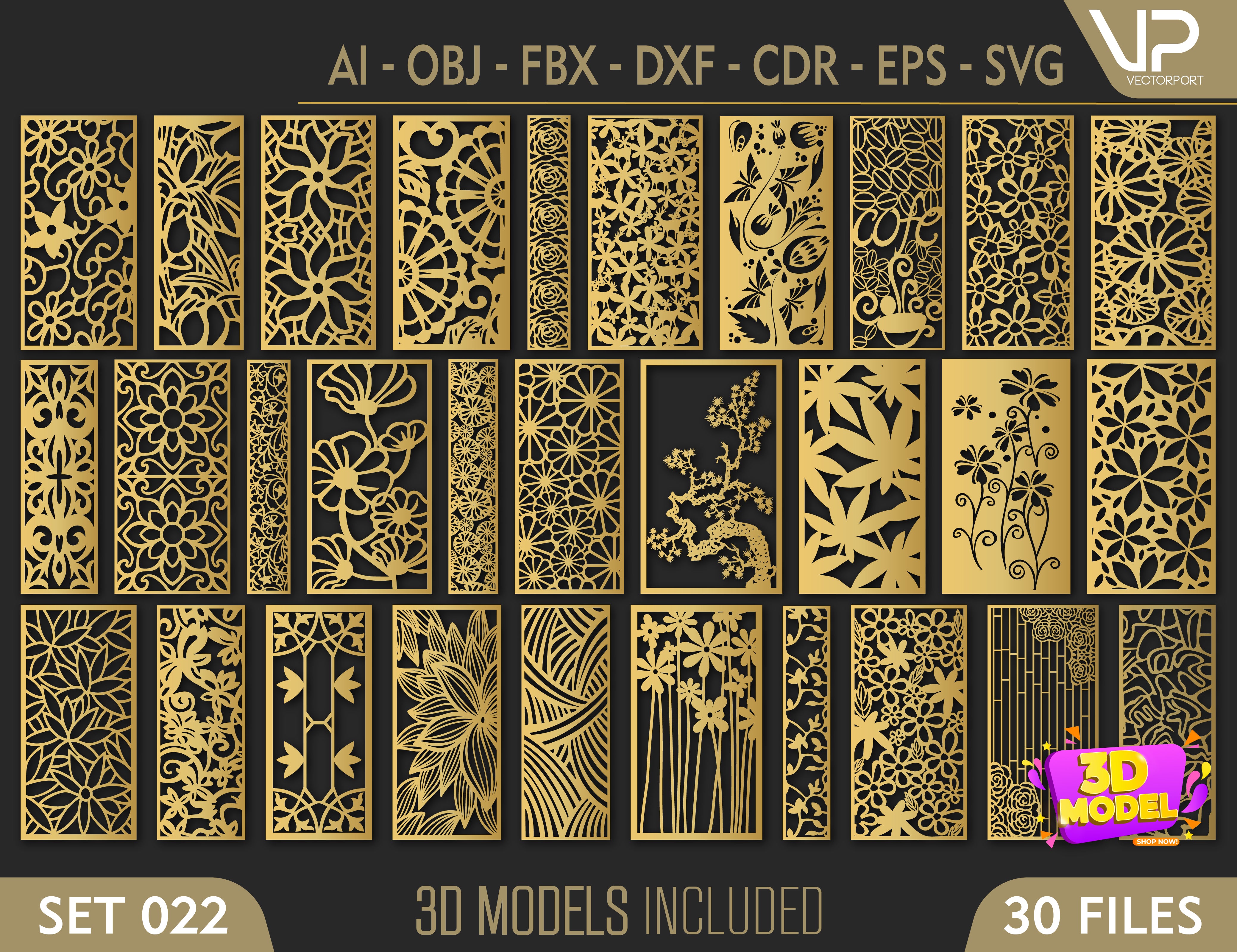 Ornaments for decorative partitions panel screen CNC Laser Cutting File | SVG, DXF, AI |#C022|