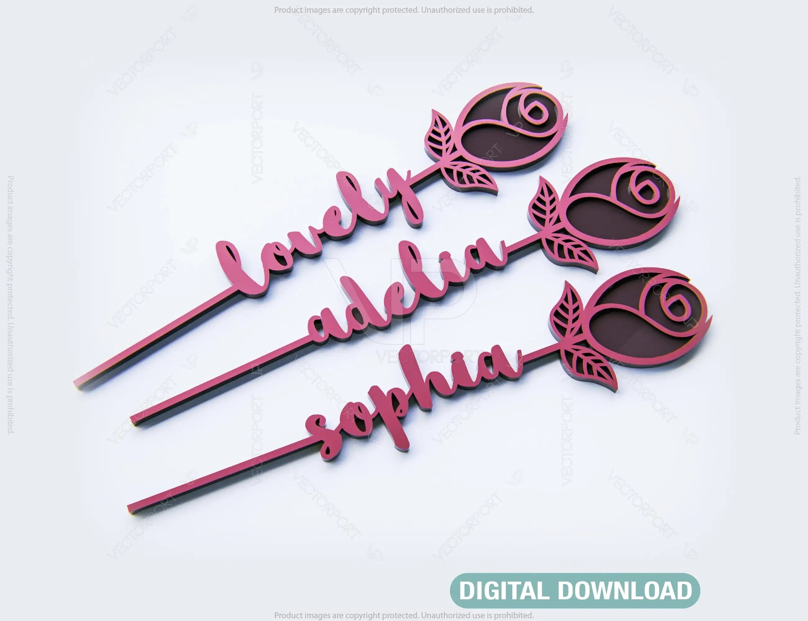 Rose - Laser Personalized Cut Out Art Valentine Day Acrylic wood Flower with name editable Cut Files |#U030|