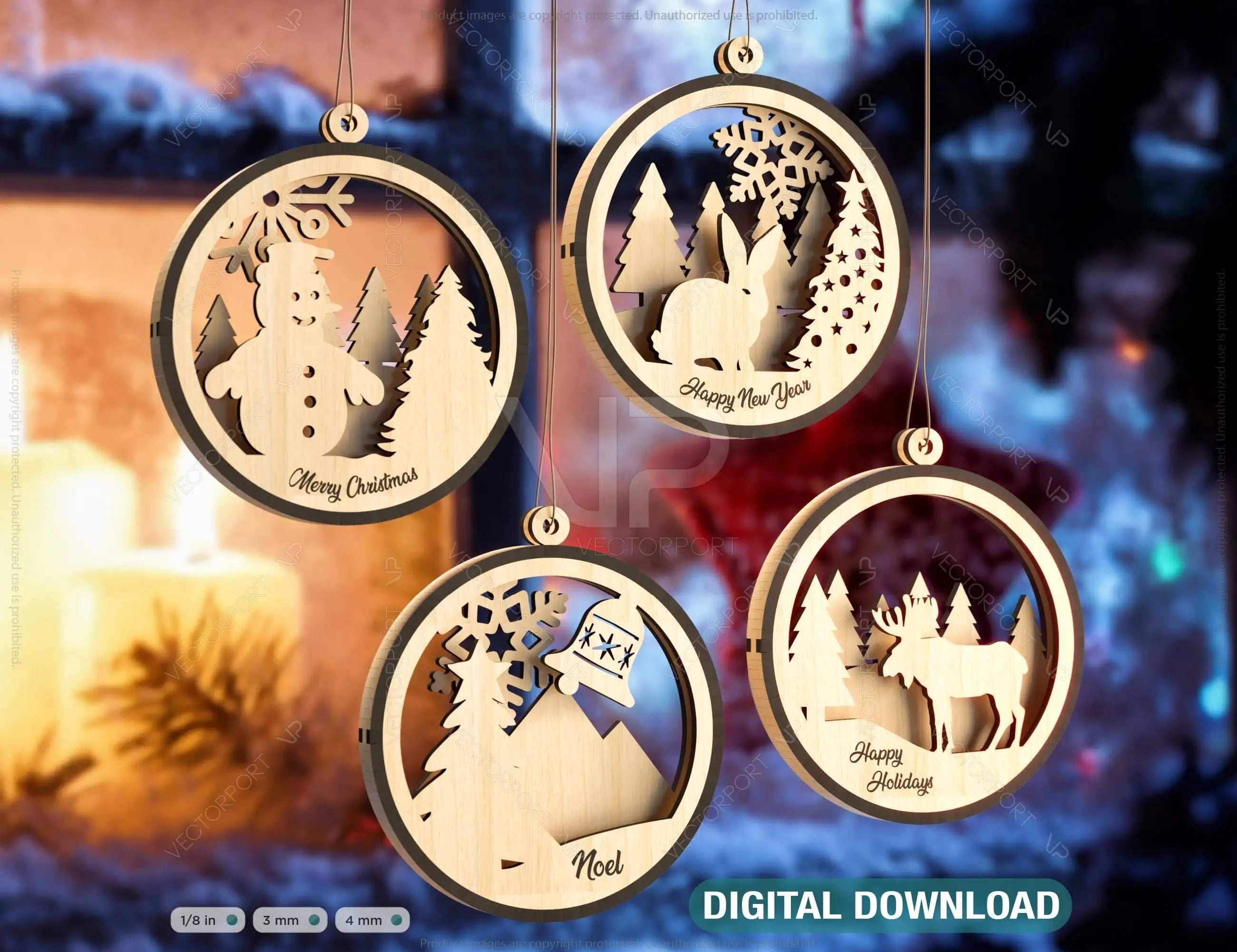 Snowman Christmas Balls Tree Decorations Craft Hanging Bauble Snowy Scene Deer carving stencil laser cut Digital Download |#U276|