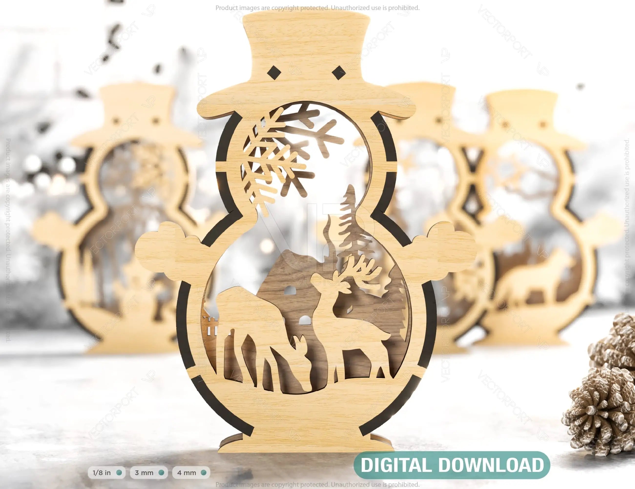Snowman Shaped Ornaments Tree Decorations Craft Standing Snowman Year tree Snowy Scene Deer New Year Laser cut Digital Download |#U335|