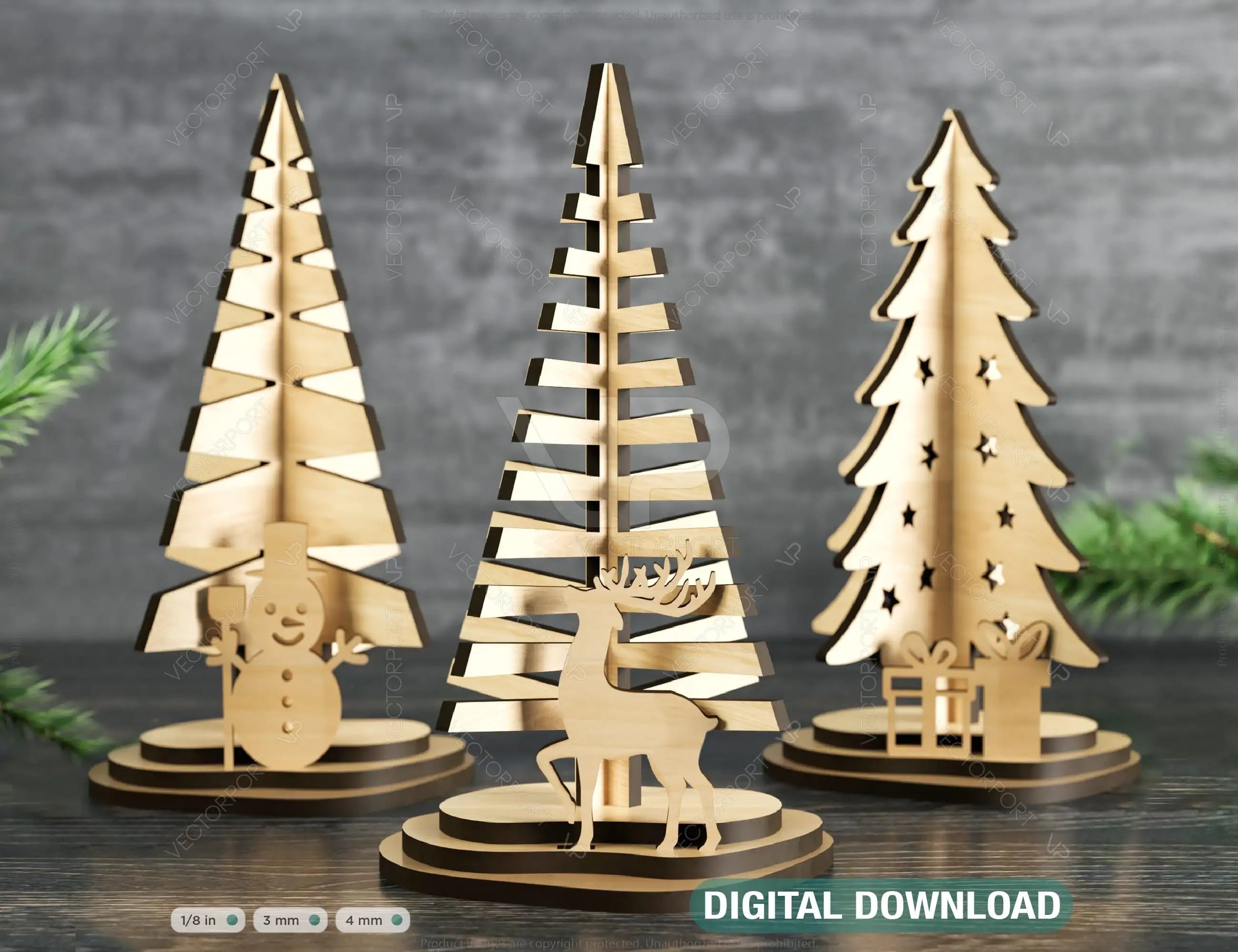 Standing Christmas Trees with Deer Gifts and Snowman Laser cut files Digital Download | SVG |#U254|