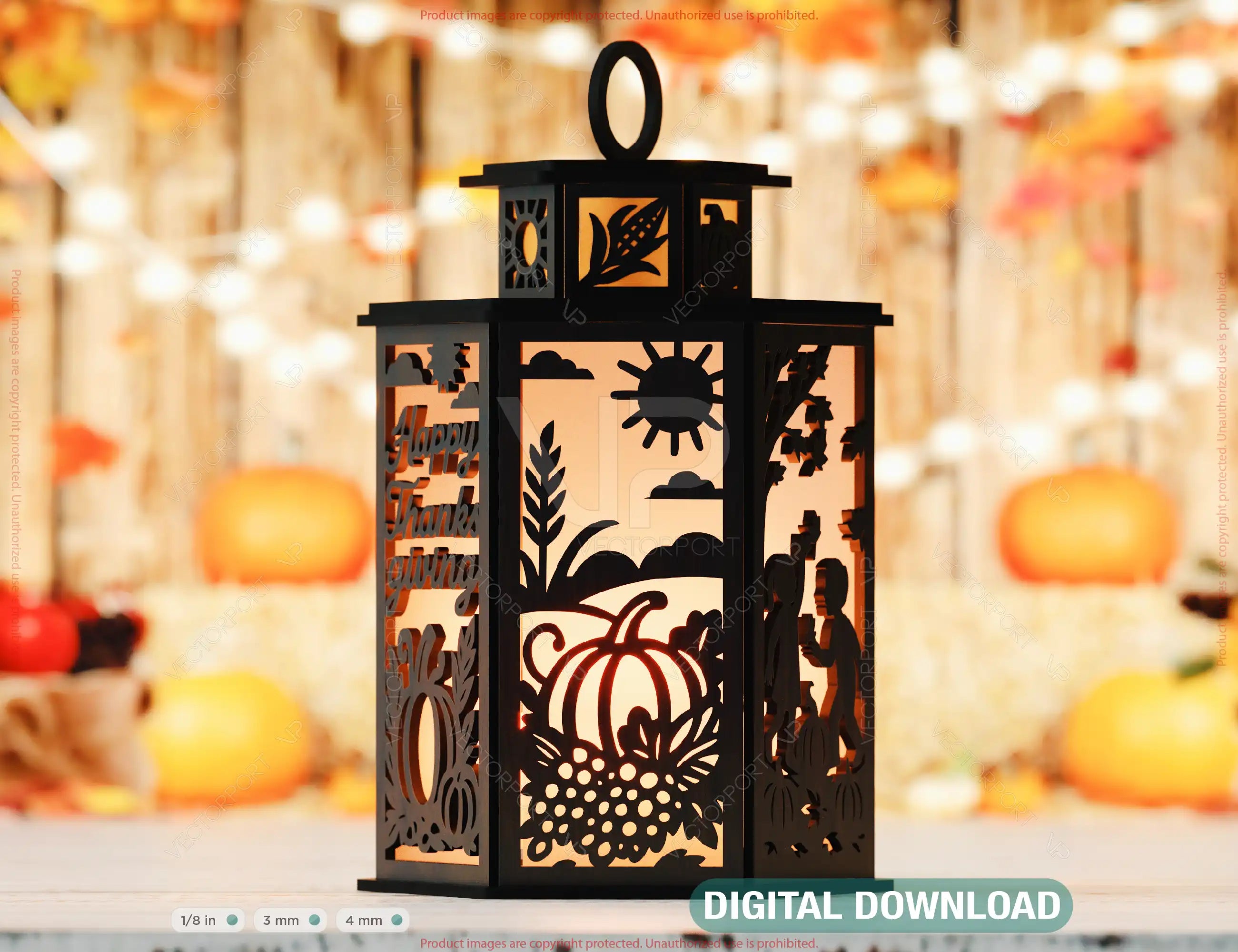 Thanksgiving Tealight Lantern SVG – Autumn Leaves, Pumpkins & Turkey Candle Holder Digital Download |#U640|