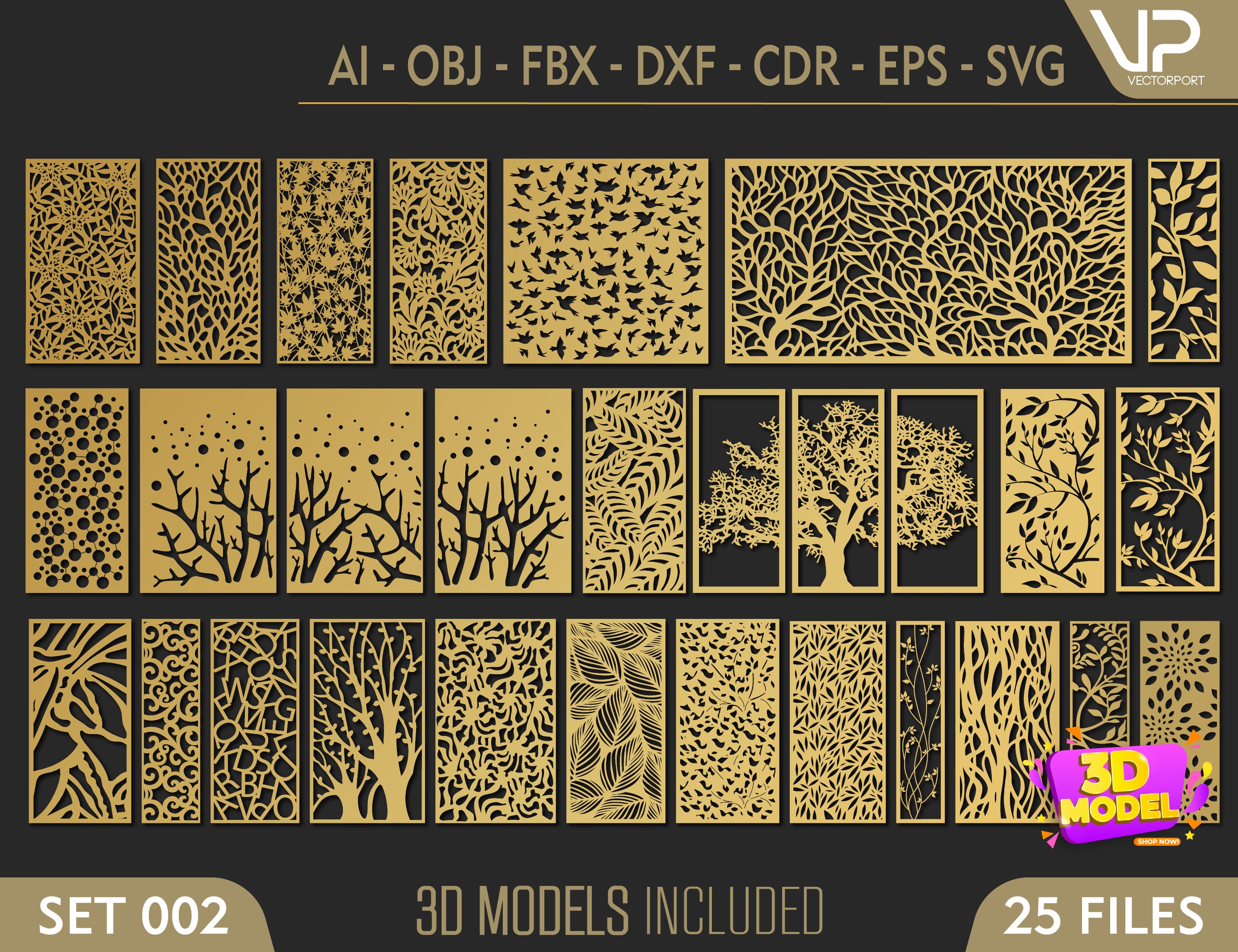 Tree Ornaments for decorative partitions panel screen CNC Laser Cutting File | SVG, DXF, AI |#C002|