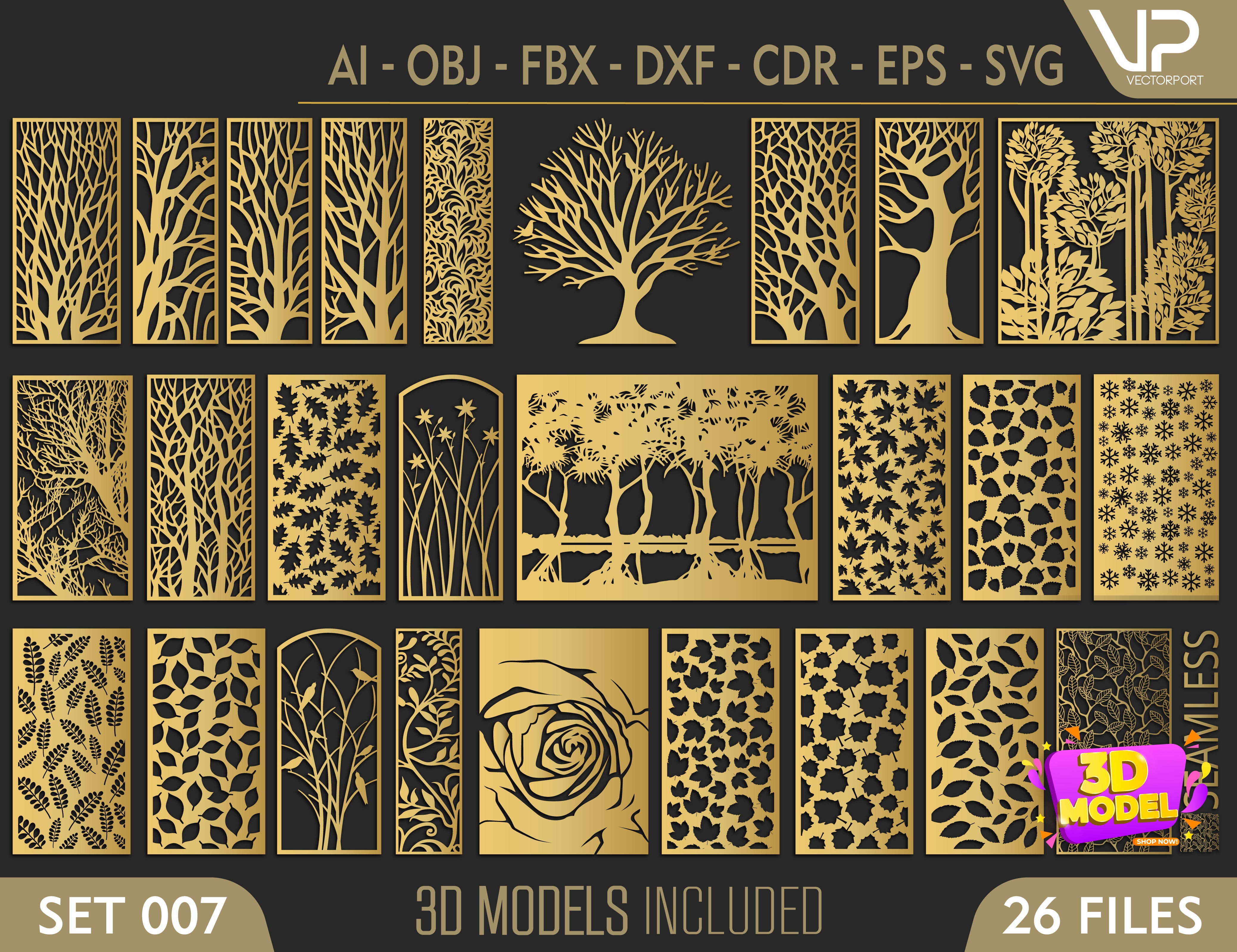 Tree Ornaments for decorative partitions panel screen CNC Laser Cutting File | SVG, DXF, AI |#C007|