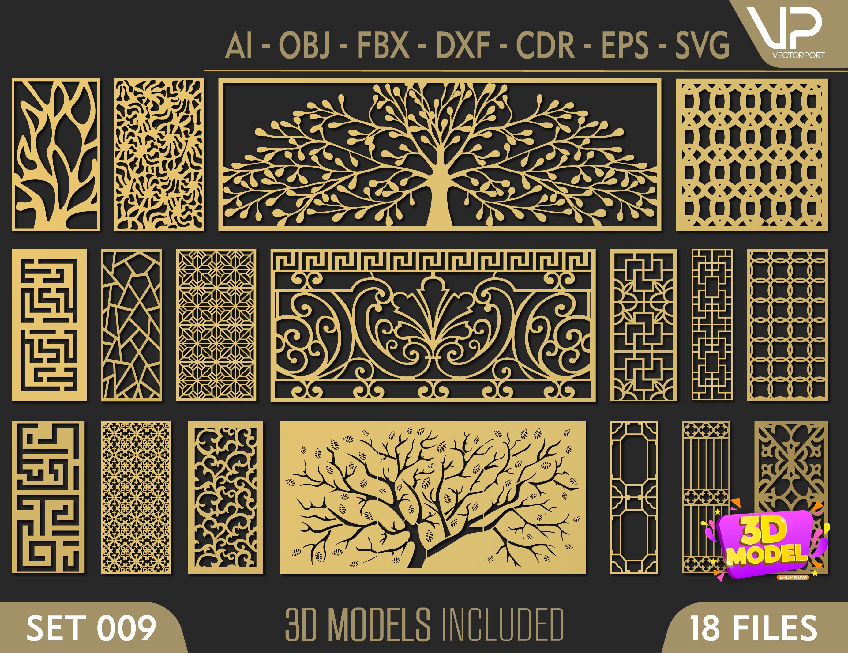 Tree Ornaments for decorative partitions panel screen CNC Laser Cutting File | SVG, DXF, AI |#C009|