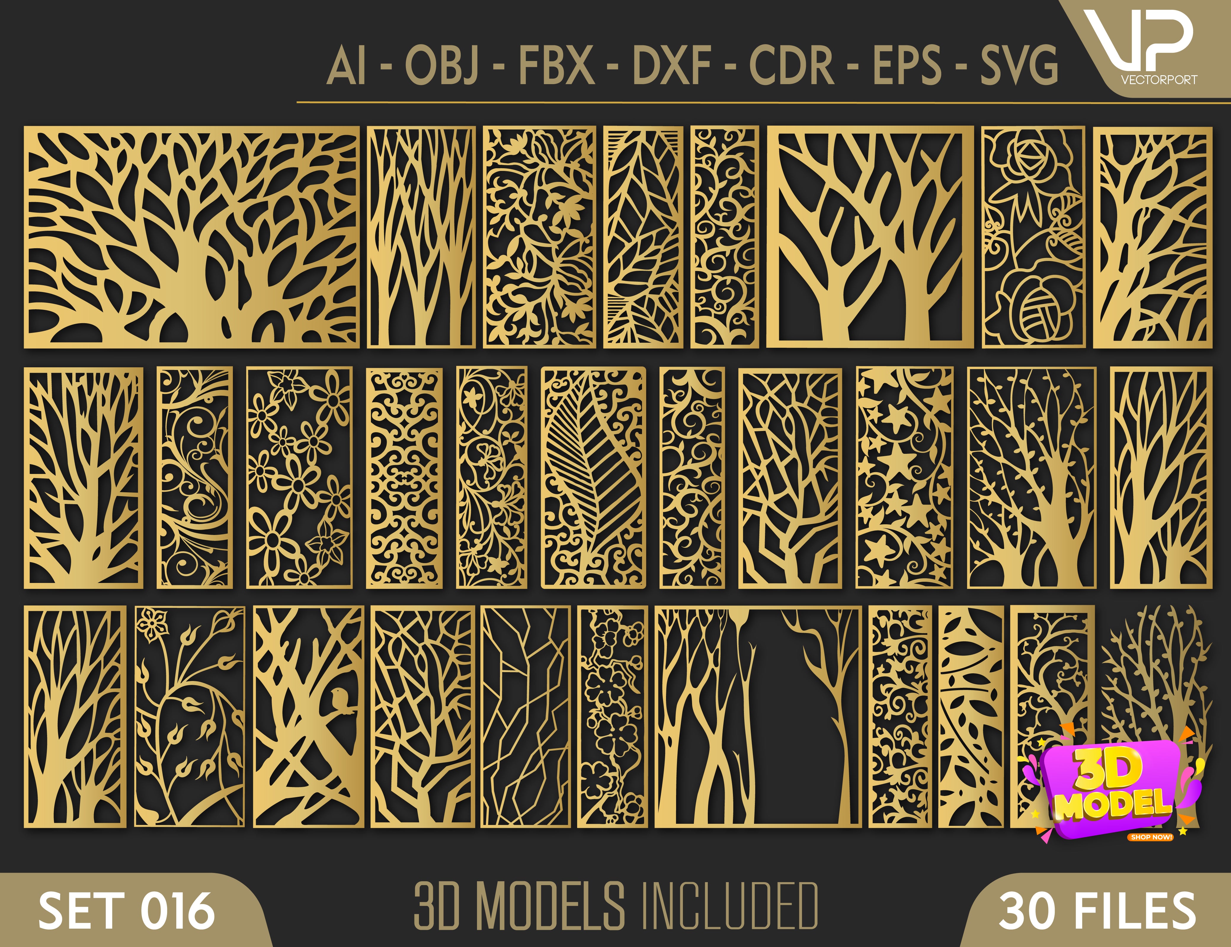 Tree Ornaments for decorative partitions panel screen CNC Laser Cutting File | SVG, DXF, AI |#C016|