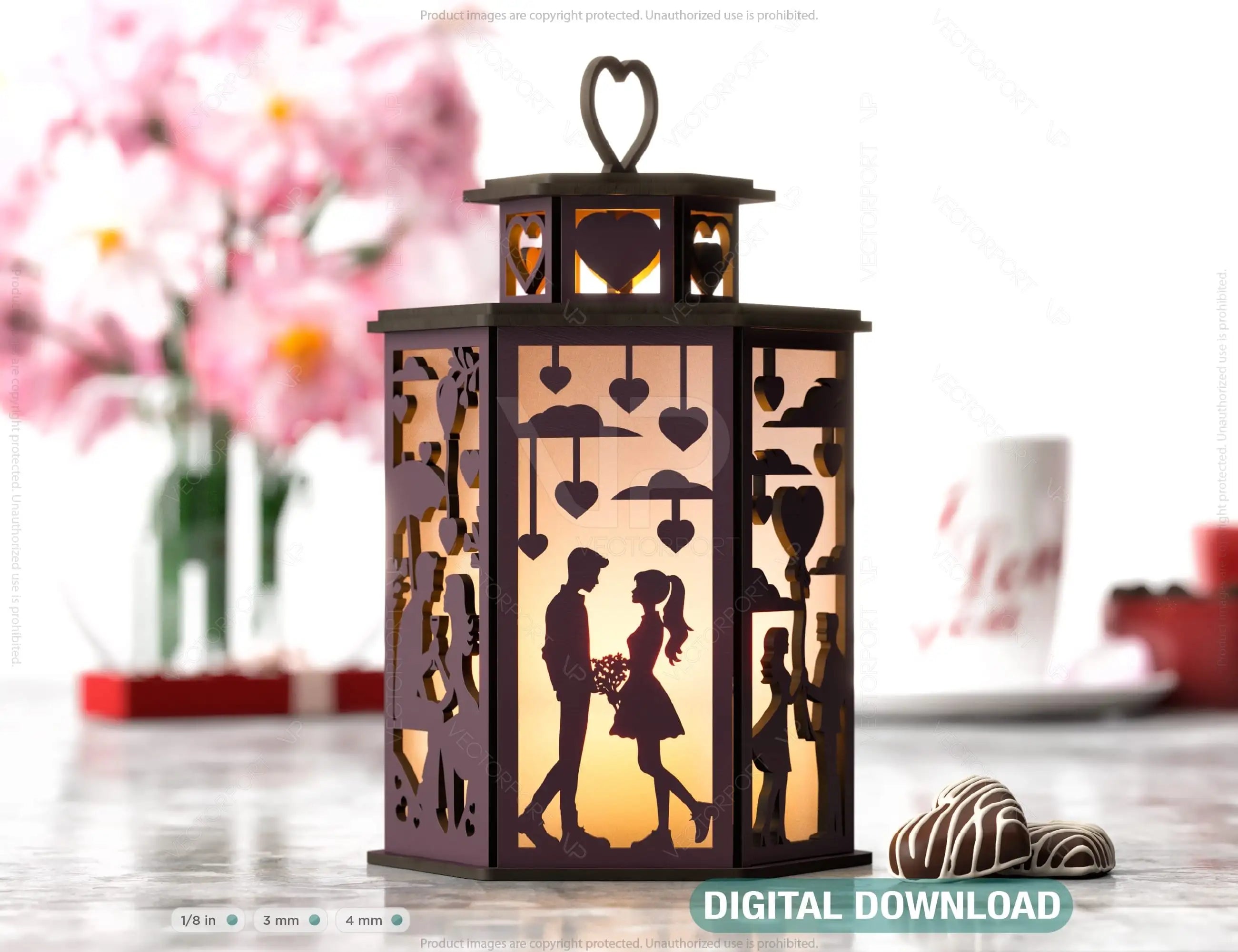 Valentine's Elegance: Laser Cut Candle Holder - Romantic 3D Glow, Artistic Table Centerpiece, Tealight Night Light Lantern Digital Download |#U373|